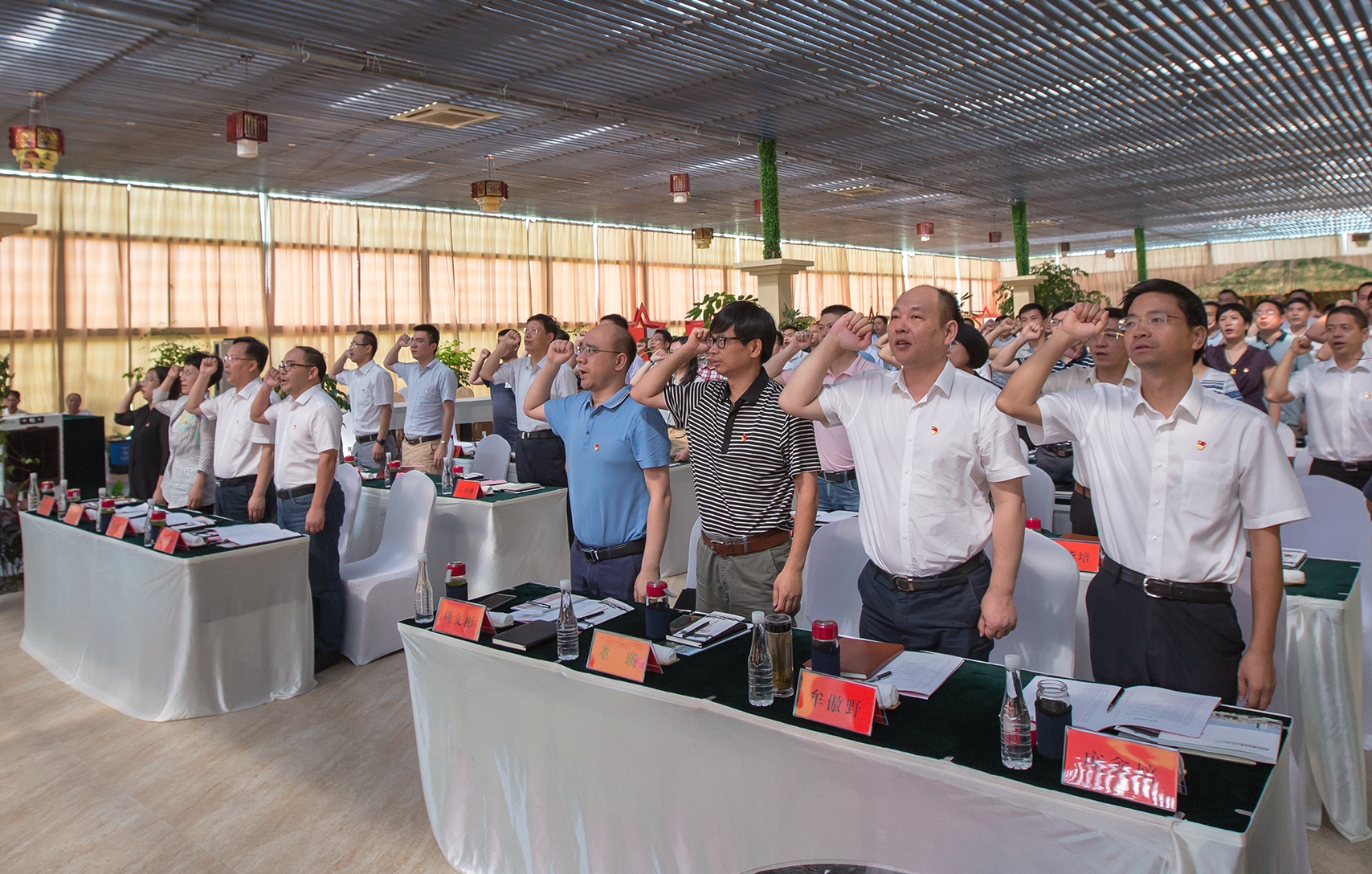 “我志愿加入中國共產黨……隨時準備為黨和人民犧牲一切,永不叛黨!”7月27日下午,在碧水環繞,綠樹成蔭的臺州市路橋區螺洋街道峴頭林村仙草莊園玻璃房里,近百名黨員擲地有聲,重溫入黨誓詞。這是為紀念建黨96周年,迎接黨的十九大勝利召開,深入學習貫徹省第十四次黨代會精神,由浙江共產黨員雜志社主辦,中共路橋區委承辦的“浙江省基層黨建成果展評會?走進路橋”活動正在進行。