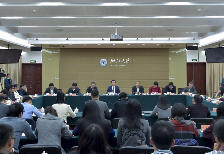 11月9日下午,浙江省委書記夏寶龍赴浙江大學紫金港校區宣講黨的十八屆六中全會精神,與師生代表互動交流。浙江日報記者 梁臻 攝