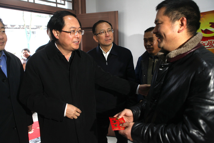 車俊十分惦念受災村民安置情況。經過近百天的奮戰,村民們日前都領到了新居鑰匙,"搬進新家過新年"的愿望夢想成真。"喬遷新居謝黨恩 國強民富沾惠政""共產黨好",在蘇村和北界鎮金溝安置小區,一條條懸掛的紅橫幅格外醒目。看到一幢幢白墻黑瓦、別致敞亮的安置小樓,車俊十分高興。他走東家、看西家,仔細察看了每家每戶的房屋布局、功能配套和生活物資籌備情況,向鄉親們祝賀喬遷之喜,祝他們在新家過個好年。