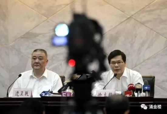 時任杭州市委常委、常務副市長徐立毅(右)在新聞發布會上。