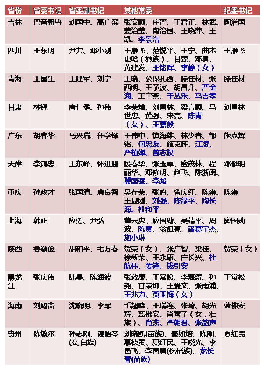 另外值得關(guān)注的是,黑龍江、重慶兩省份新一屆省委常委領(lǐng)導(dǎo)班子均為“60后”成員。