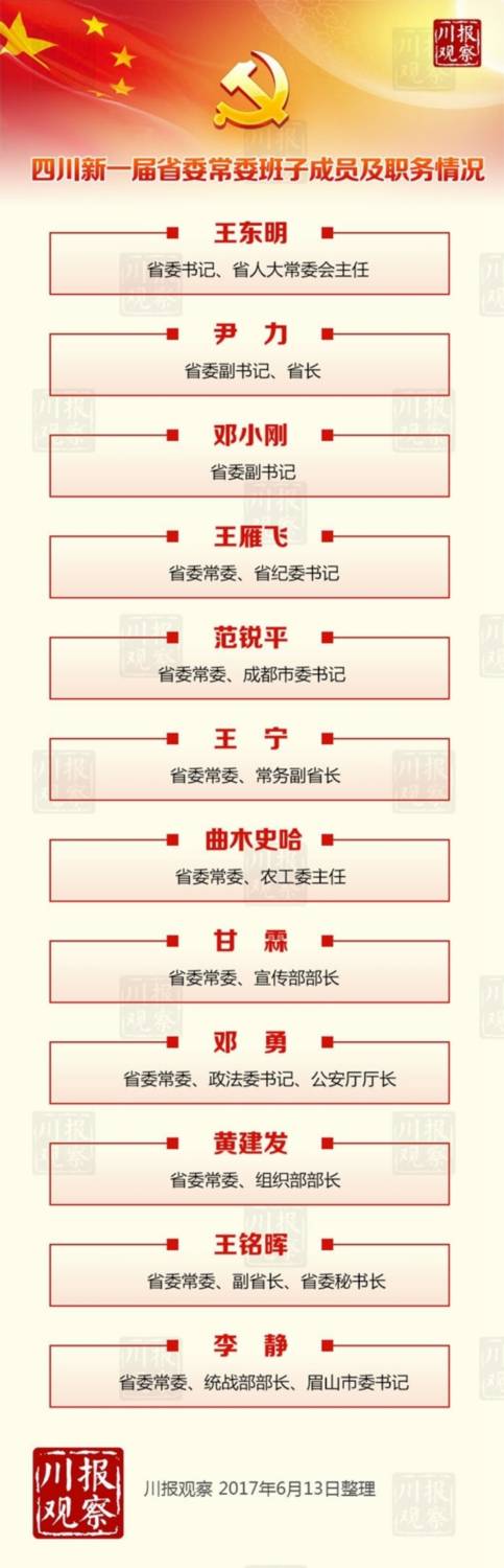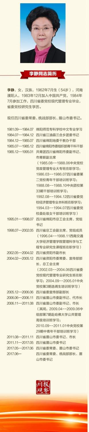 李靜任四川省委統(tǒng)戰(zhàn)部部長(zhǎng) 四川新一屆省委常委班子成員及職務(wù)情況