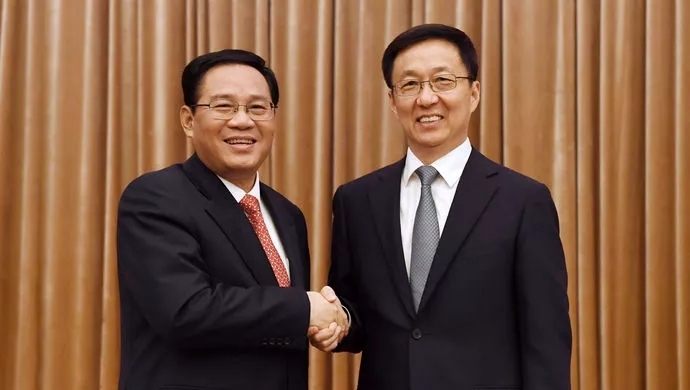 10月28日,河北省委在石家莊召開全省領導干部會議。這是會后趙克志(右)同志和王東峰(左)同志親切握手。據河北日報