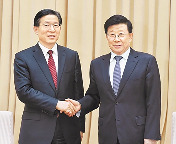 10月28日,河北省委在石家莊召開全省領(lǐng)導(dǎo)干部會議。這是會后趙克志同志和王東峰同志親切握手。郭昭 圖