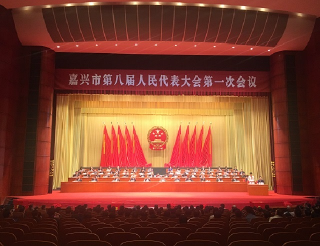 嘉興市八屆人大代表共有395名,本次會議實到代表389名,符合法定人數(shù)。