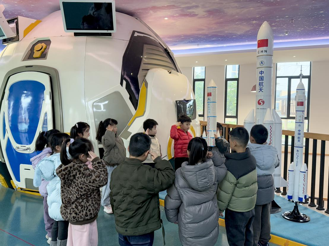 開(kāi)學(xué)第一天,江山市文錦幼兒園的“太空基地”旁,孩子們拿著自己動(dòng)手制作的火箭模型,興致勃勃地模擬發(fā)射現(xiàn)場(chǎng)。老師向孩子們講述航天員的飛天故事,把航天知識(shí)和英雄精神傳遞給孩子們。這場(chǎng)航天主題活動(dòng),不僅點(diǎn)燃了孩子們對(duì)宇宙的好奇與想象,也在幼小的心田里種下了愛(ài)國(guó)情懷與科學(xué)夢(mèng)想,讓童心向著星辰大海勇敢出發(fā)。