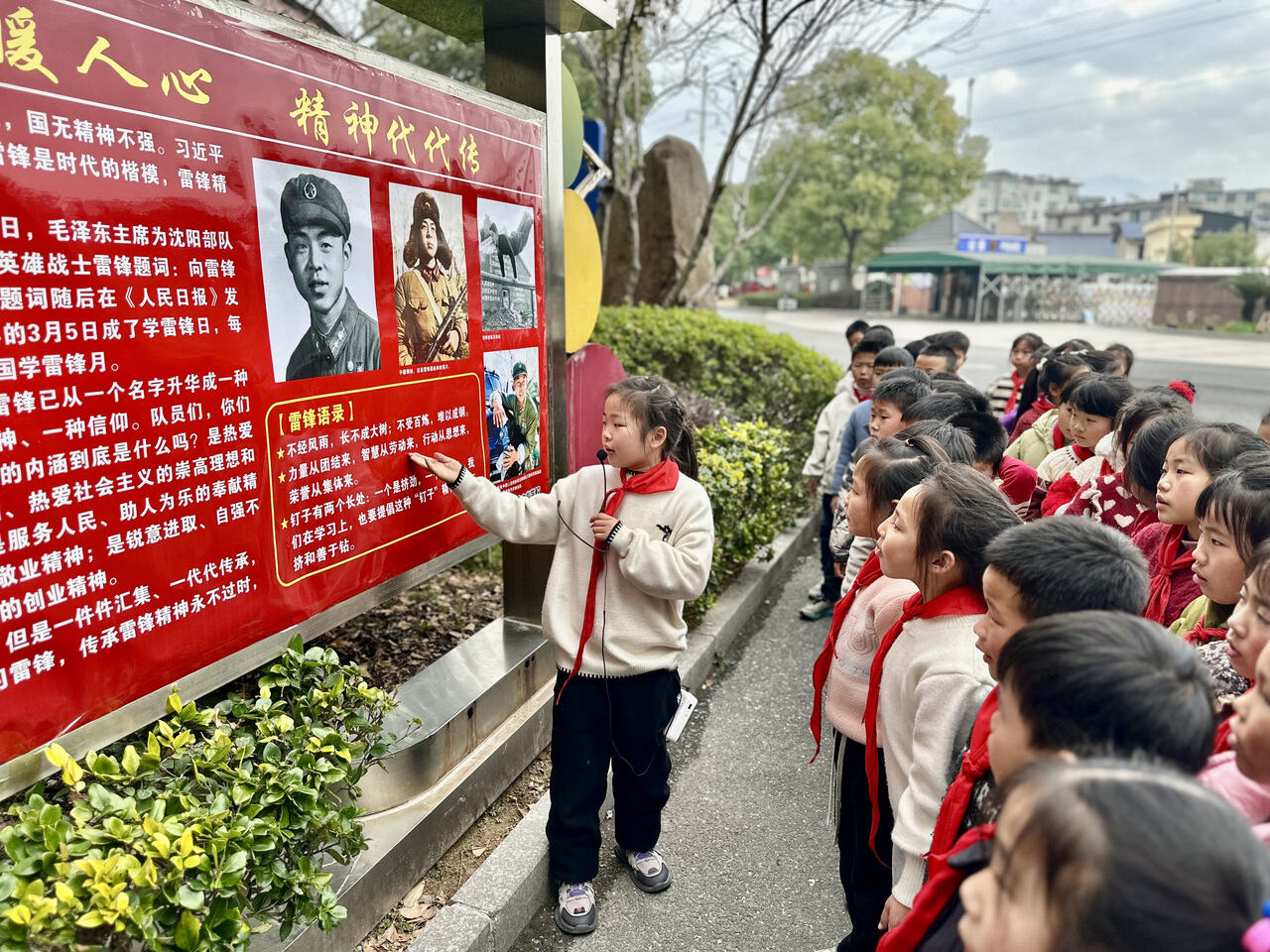 松陽(yáng)縣古市鎮(zhèn)中心學(xué)校的師生們把開(kāi)學(xué)第一課搬到了雷鋒宣傳欄前。一位學(xué)生自告奮勇地當(dāng)起了“小宣講員”,為同學(xué)們講述雷鋒故事。孩子們凝神聆聽(tīng),在榜樣的事跡中開(kāi)啟新學(xué)期。這不僅是精神的傳承,更是成長(zhǎng)的啟蒙——學(xué)雷鋒的種子,正伴著春日的新芽,在校園里悄然萌發(fā)。