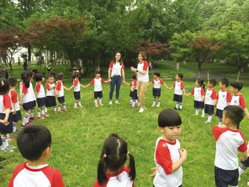 5月30日,嘉興市第二幼兒園組織小朋友開展走綠道活動,孩子們在終點玩起了游戲,歡慶“六一”兒童節。