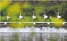 5月14日,50名瑜伽愛好者在奉化市張家村溪坑水壩上進行瑜伽表演,引導游客親近自然,愛護水環(huán)境。