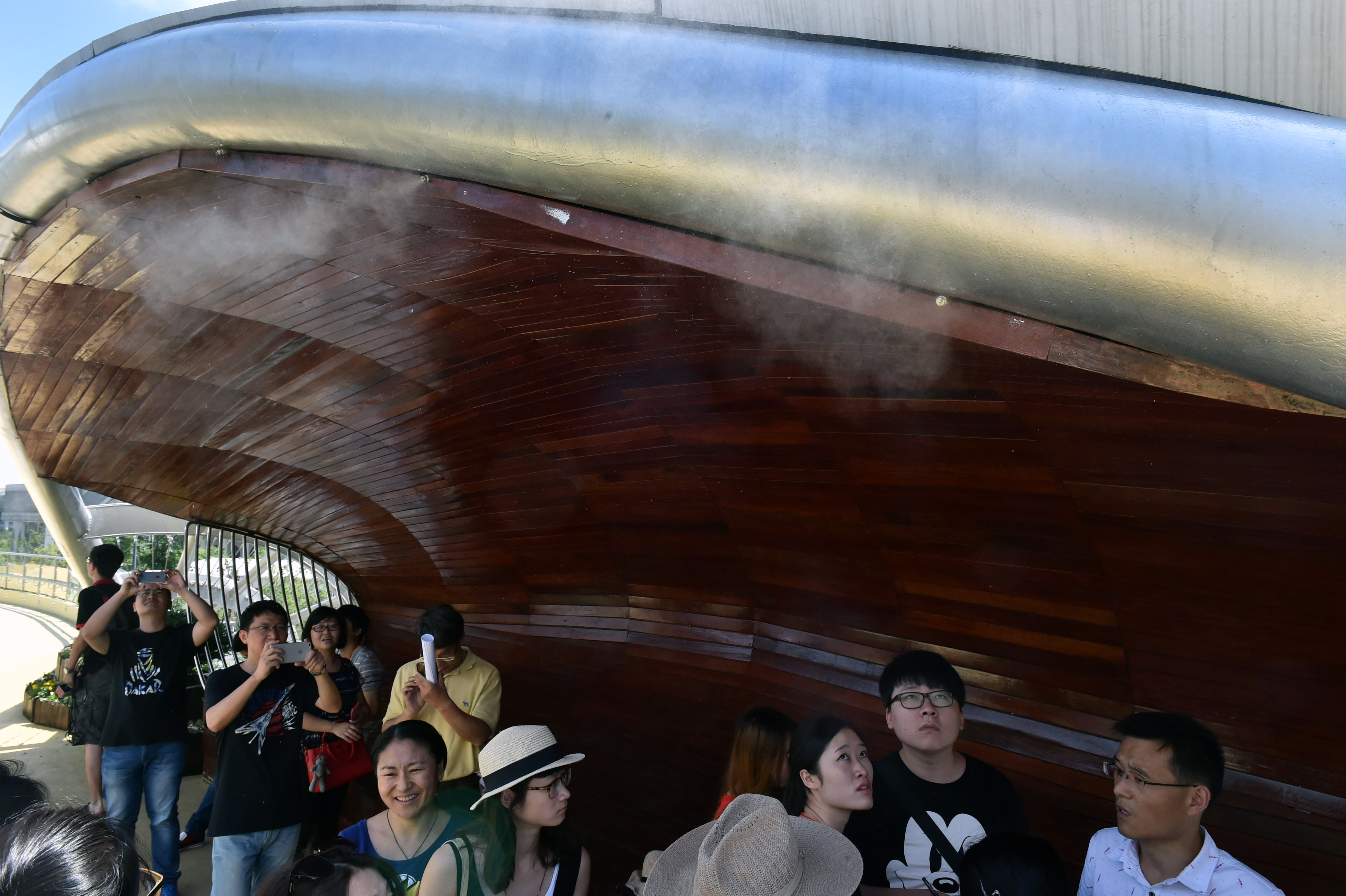 挑棚前段設(shè)置噴霧,在炎炎夏日,或者夜間燈光下,霧氣縹緲,既能降溫,又能成為橋上一景。