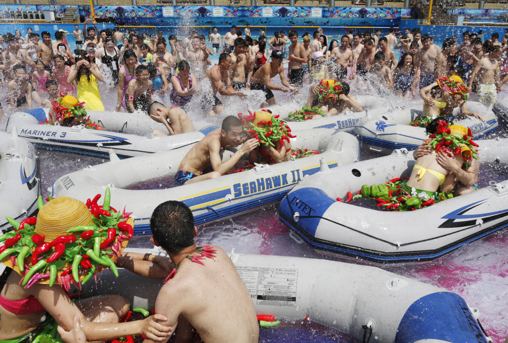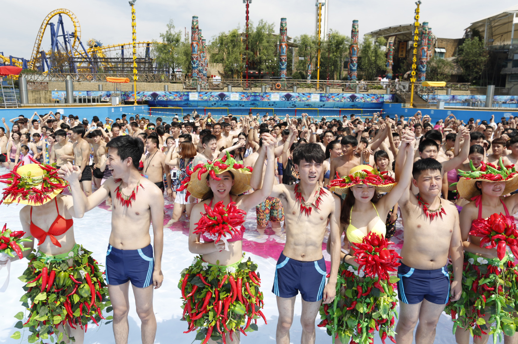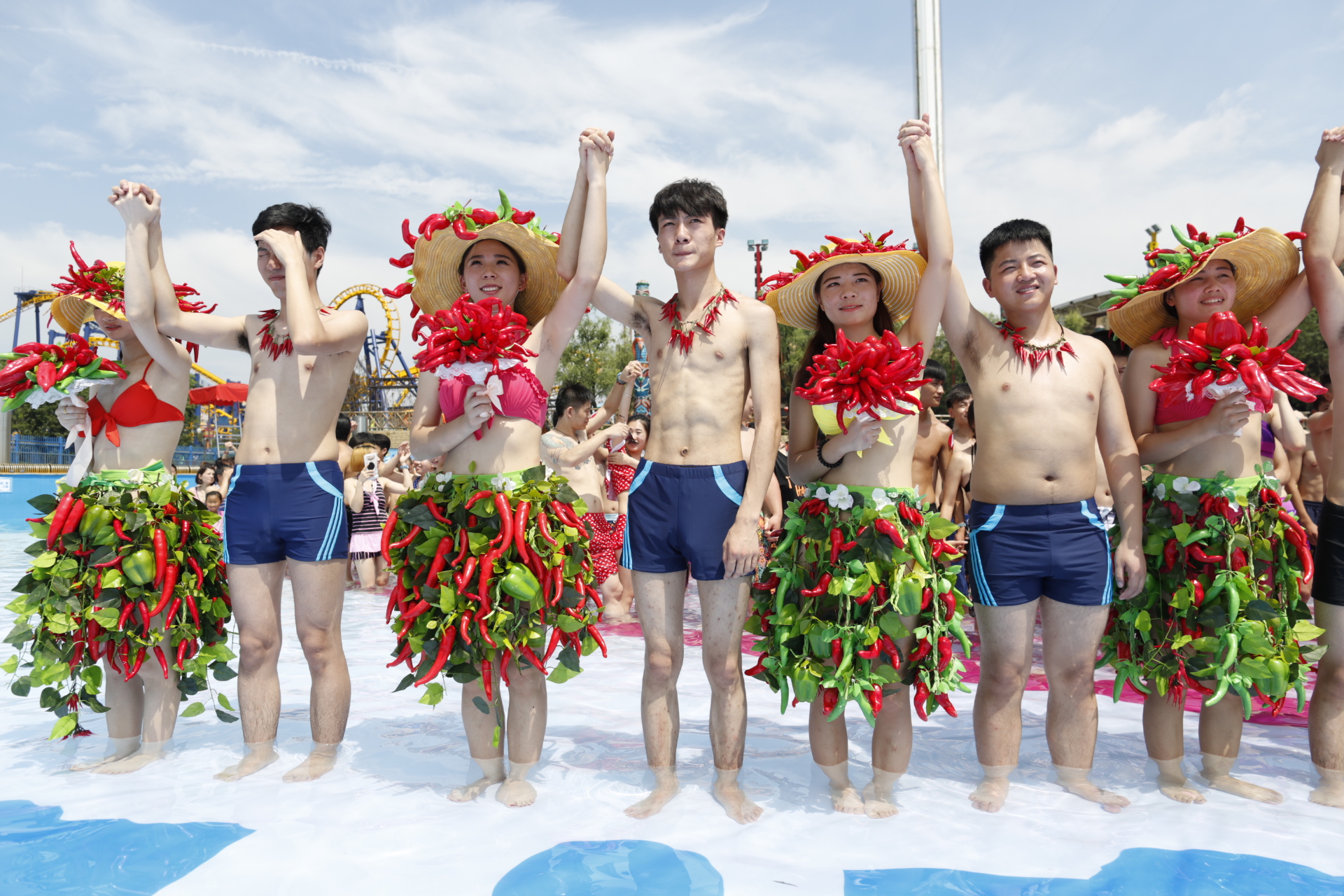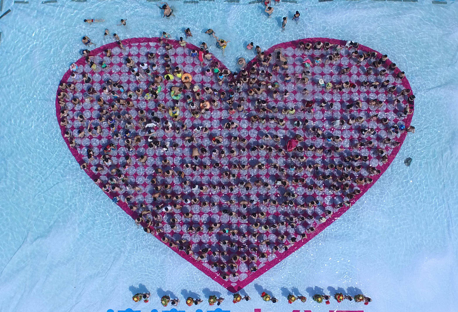 浙江黨建網訊(浙江日報記者 朱衛國 攝)7月5日,杭州浪浪浪水上樂園為畢業不分手的大學生情侶舉行水中婚禮。同學們在水中拼成巨大的心形,情侶穿著辣椒bikini婚紗,盡情享受水中婚禮的歡樂。