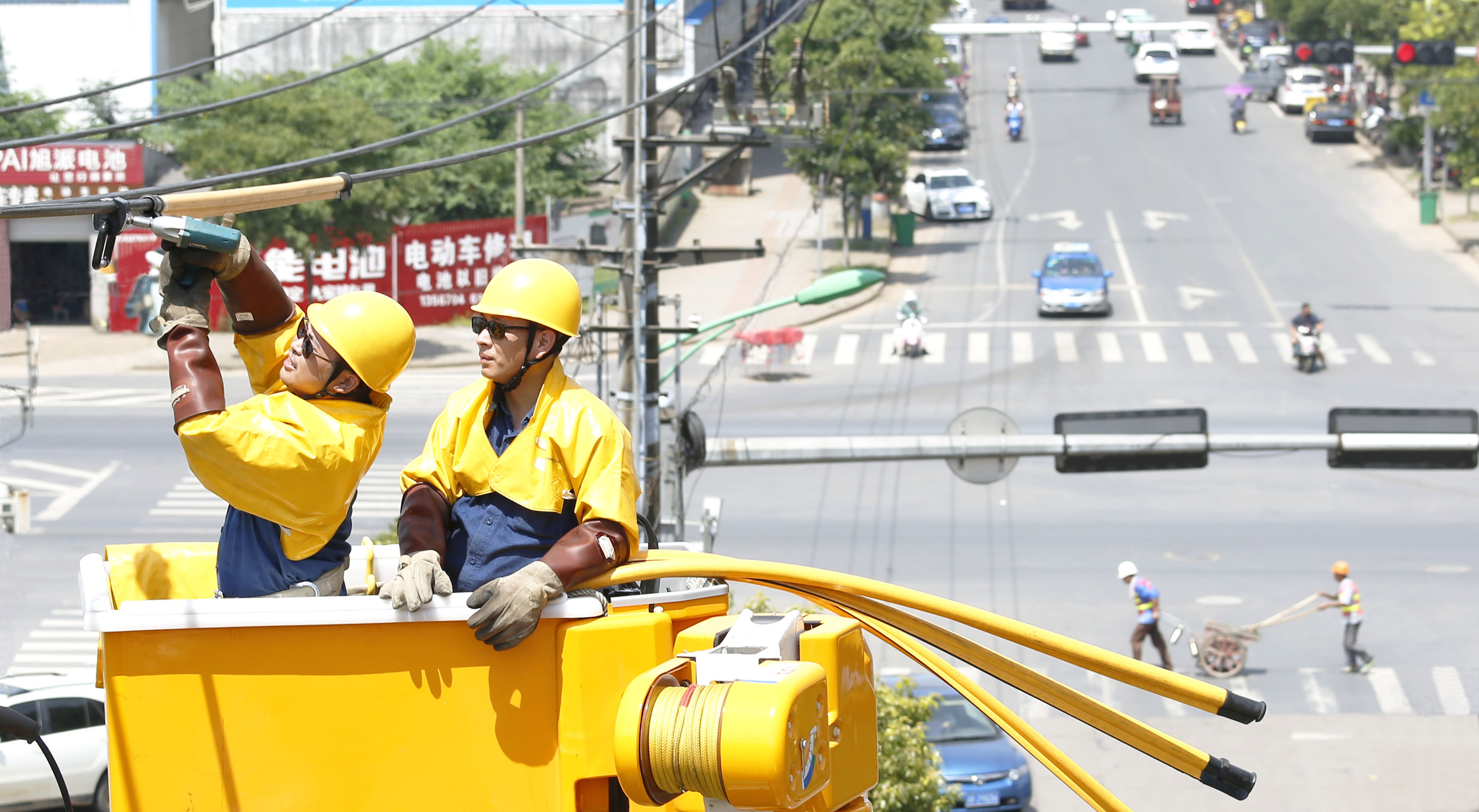 浙江黨建網訊(衢州日報記者 潘旻 攝)7月6日,國網衢州供電公司配電運檢室工作人員冒著高溫,身著5公斤重、不透氣的絕緣防護服,在衢江區帶電作業,消除線路缺陷,為接下來的電網迎峰度夏工作做好準備。