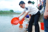 浙江黨建網(wǎng)訊7月8日,建德市在大同鎮(zhèn)徐韓村大同溪精品河道段舉行漁業(yè)資源增殖放流啟動(dòng)儀式。隨后,該市還將在蓮花、乾潭等鎮(zhèn)的精品河道內(nèi),放養(yǎng)尾黃尾密鲴、細(xì)鱗斜頜鲴、花魚骨等品種,共計(jì)550萬尾夏花魚苗,以改善河道水質(zhì)環(huán)境,豐富水生態(tài)資源,鞏固“五水共治”成果。(寧文武 洪浪 攝)