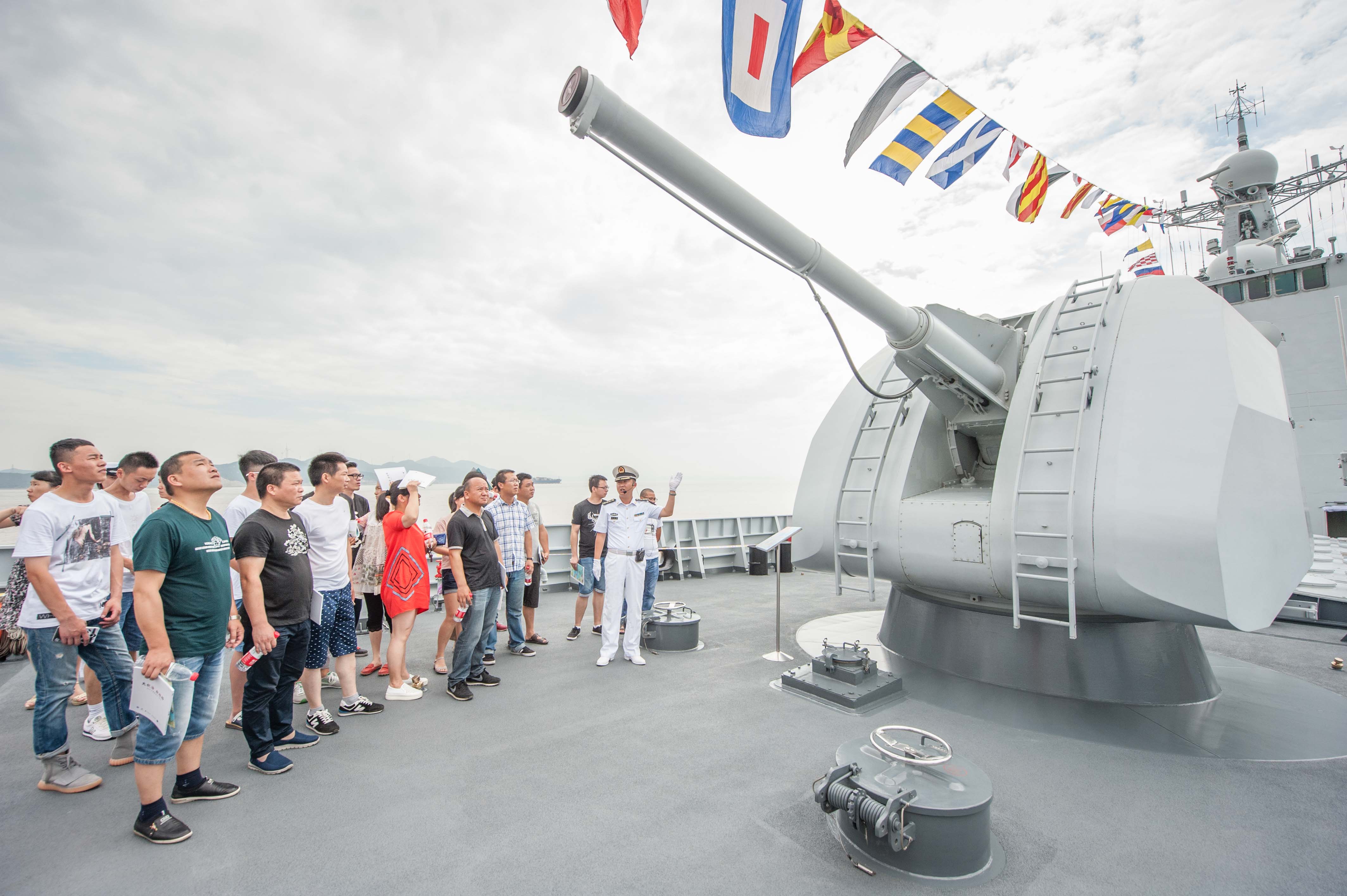 浙江黨建網訊(浙江日報記者 郭戟鎧 通訊員 宋兵 攝)7月12日,市民興致勃勃地參觀海軍軍艦“鄭州艦”,切身感受了我國國防事業的發展。這也是中國航海日的重要活動之一。