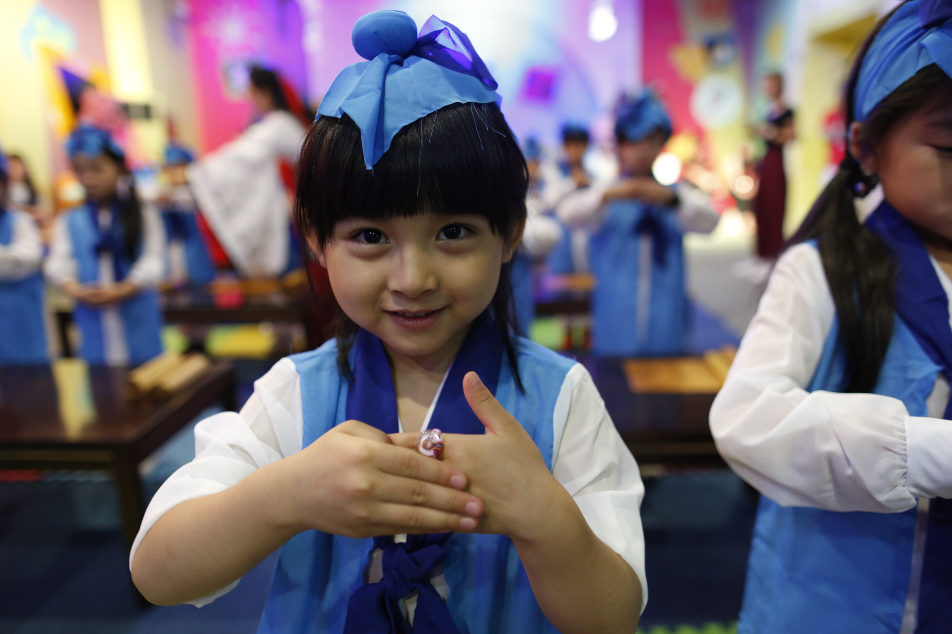 萌娃著漢服學(xué)習(xí)傳統(tǒng)文化