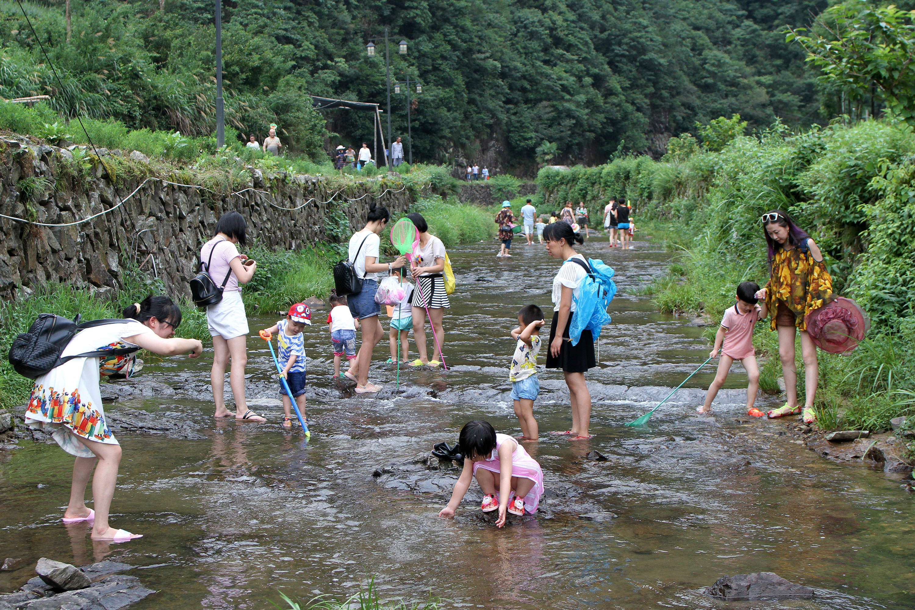 浙江黨建網(wǎng)訊7月16日,金華磐安縣安文鎮(zhèn)花溪景區(qū),踏水覓清涼的游人絡(luò)繹不絕,許多家長趁著周末休息日紛紛帶孩子前來戲水、納涼。(時補(bǔ)法 攝)