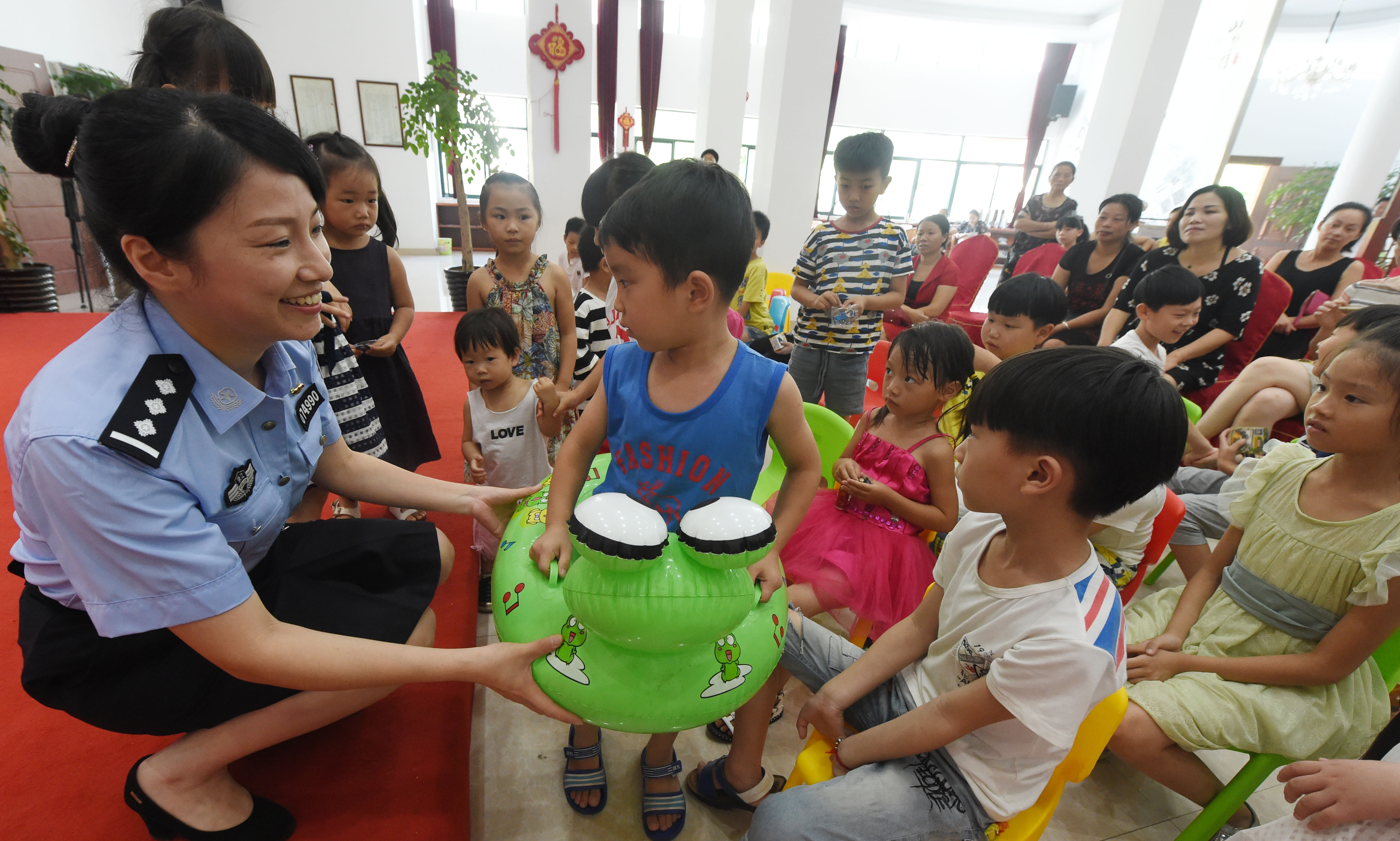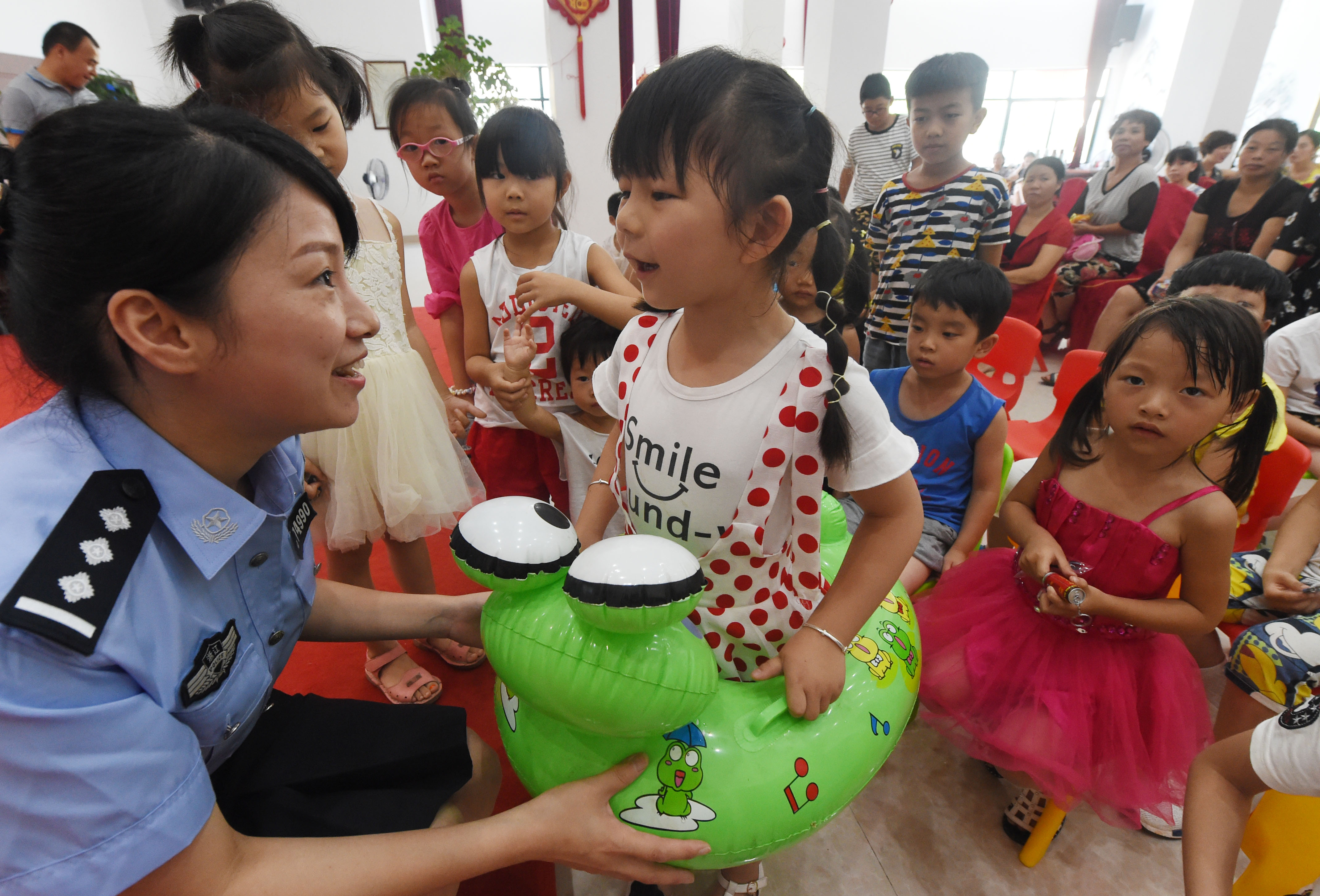 浙江黨建網(wǎng)訊7月19日上午,警察阿姨給兒童講游泳安全知識(shí)。當(dāng)日,臺(tái)州市路橋區(qū)路北街道婦聯(lián)邀請(qǐng)公安分局女警官,在三山村市級(jí)兒童保護(hù)示范點(diǎn),開展暑假安全教育公益課,為轄區(qū)留守兒童開設(shè)防拐騙、防走失、防溺水以及出行交通安全知識(shí)課,讓他們度過開心、快樂、多彩的暑假。(王保初 攝)