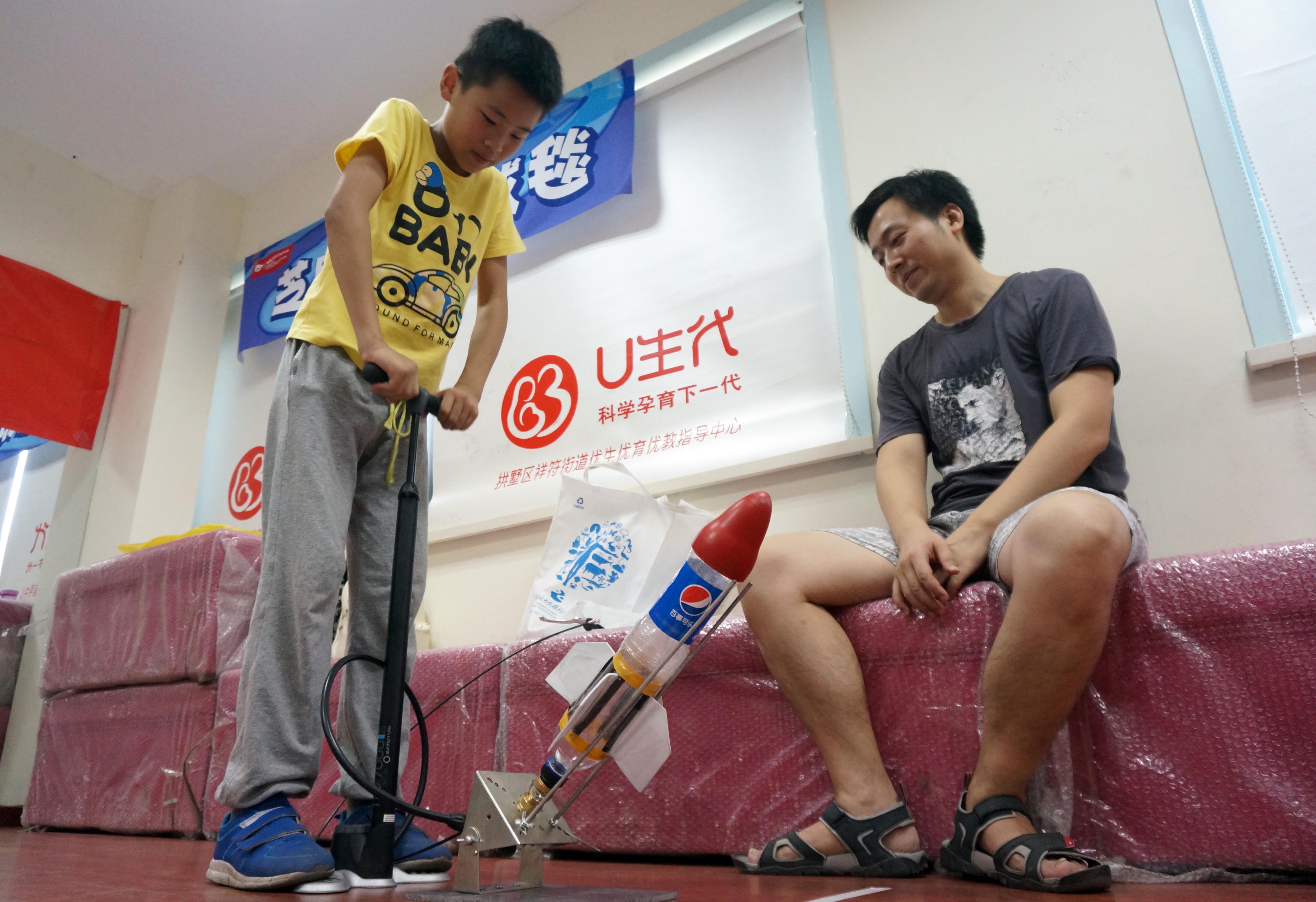 小朋友們正在玩火箭發(fā)射游戲。