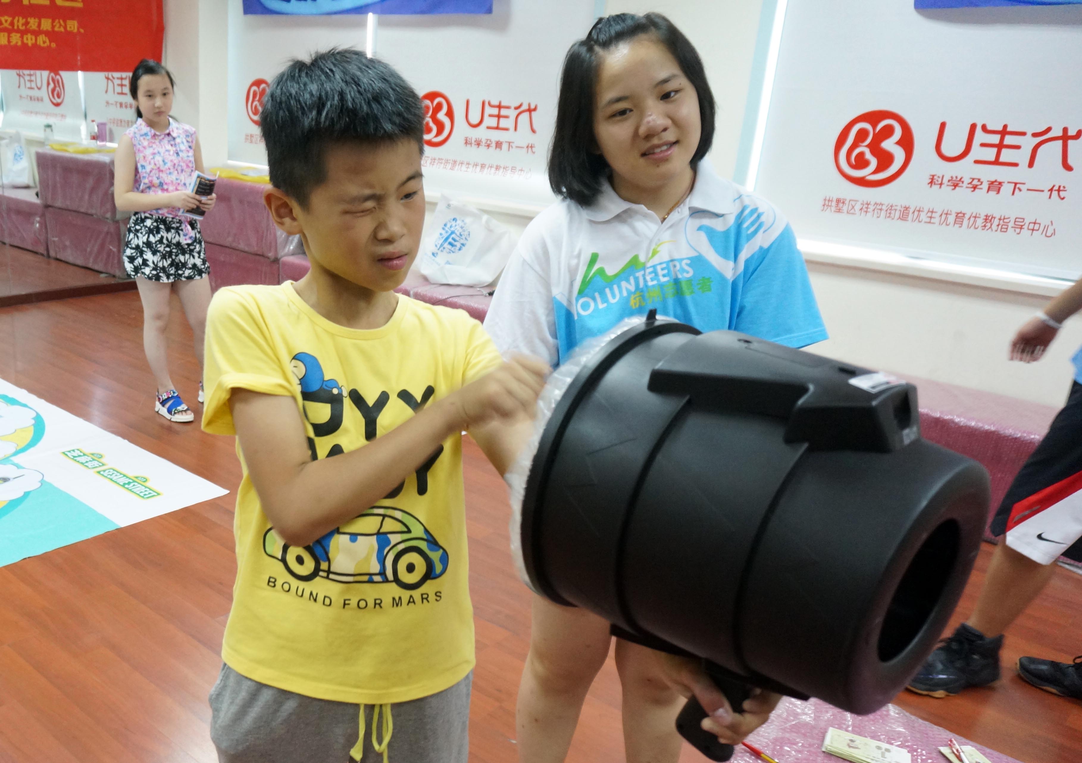 浙江黨建網(wǎng)訊(浙江日報記者 吳煌 通訊員 施琛 攝)7月21日,由杭州青少年活動中心組織的“暑期快樂大篷車”,首站開進了祥符街道映月社區(qū)。與往年不同的是,今年結合G20峰會,活動中心設計推出了“童眼看G20”、“西湖剪影”、“拼拼看”、“活字印刷”等項目,讓孩子們在玩耍的同時宣傳家鄉(xiāng)西湖,了解G20相關知識。