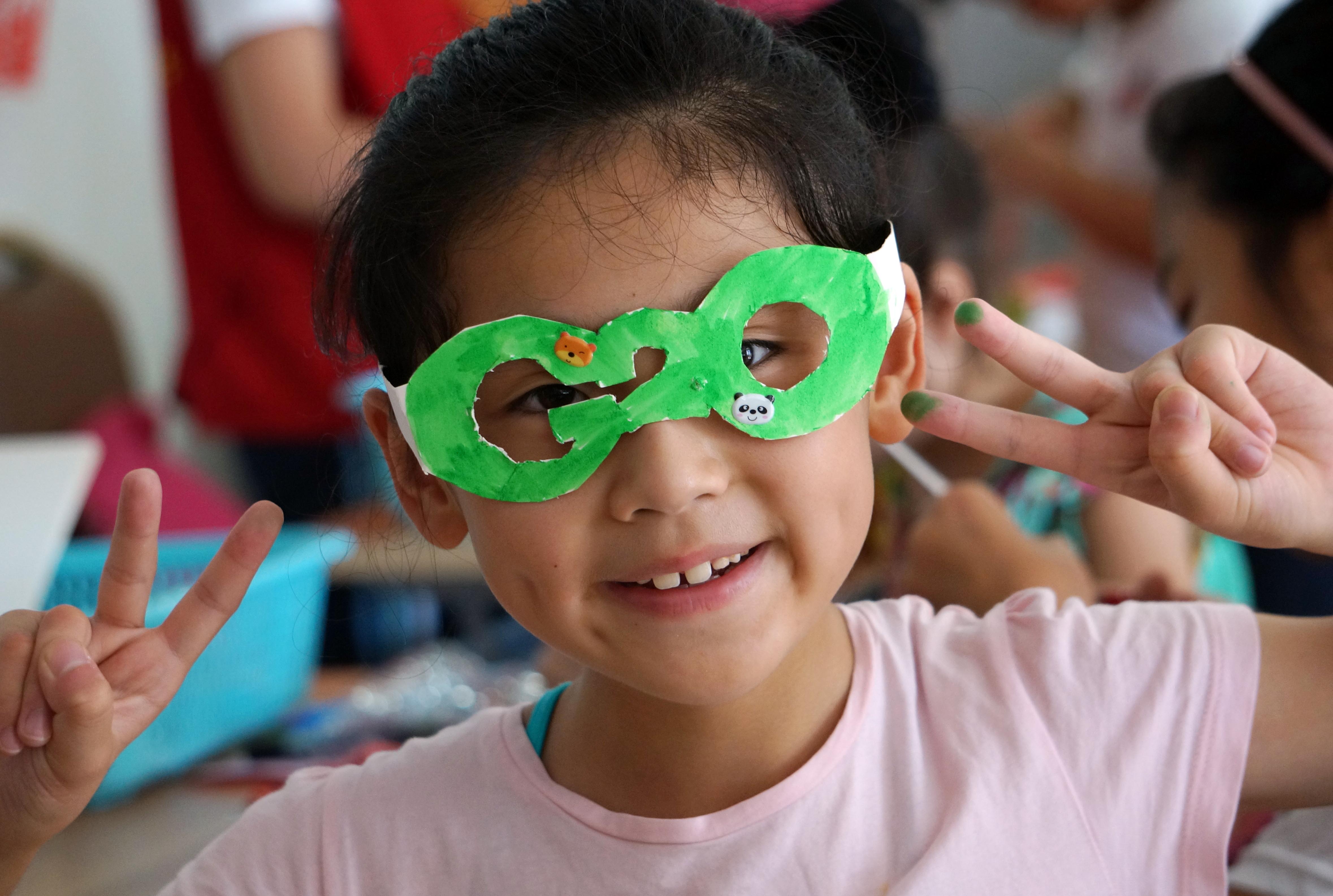 小朋友制作的G20字樣的眼鏡。
