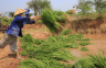 農家往稻田運送秧苗。