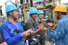 浙江黨建網訊(浙江日報記者 吳元峰 通訊員 徐國鋒 蔣力奔 攝)7月25日,杭州持續高溫。在蕭山110千伏祝山線“上改下”工程工地,蕭山區供電公司為一線電力工人送來了清涼用品和防暑藥品,慰問高溫下作業的施工人員。