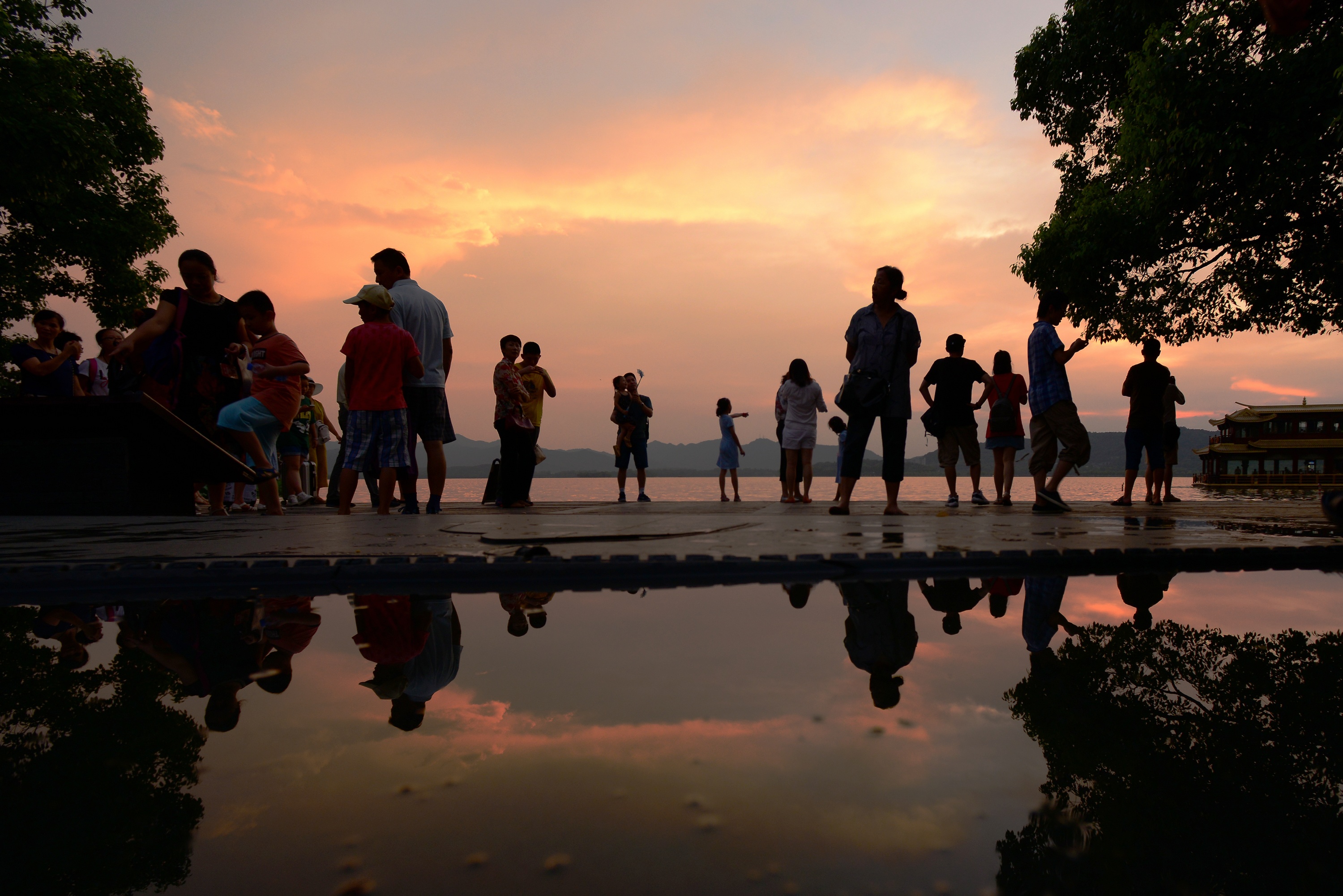 浙江黨建網訊7月26日落日時分,暴雨后杭州迎來晚霞,美麗的西湖夕陽醉了游人。(里爾 攝)
