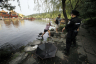 勸導游客不要在西湖里洗腳。