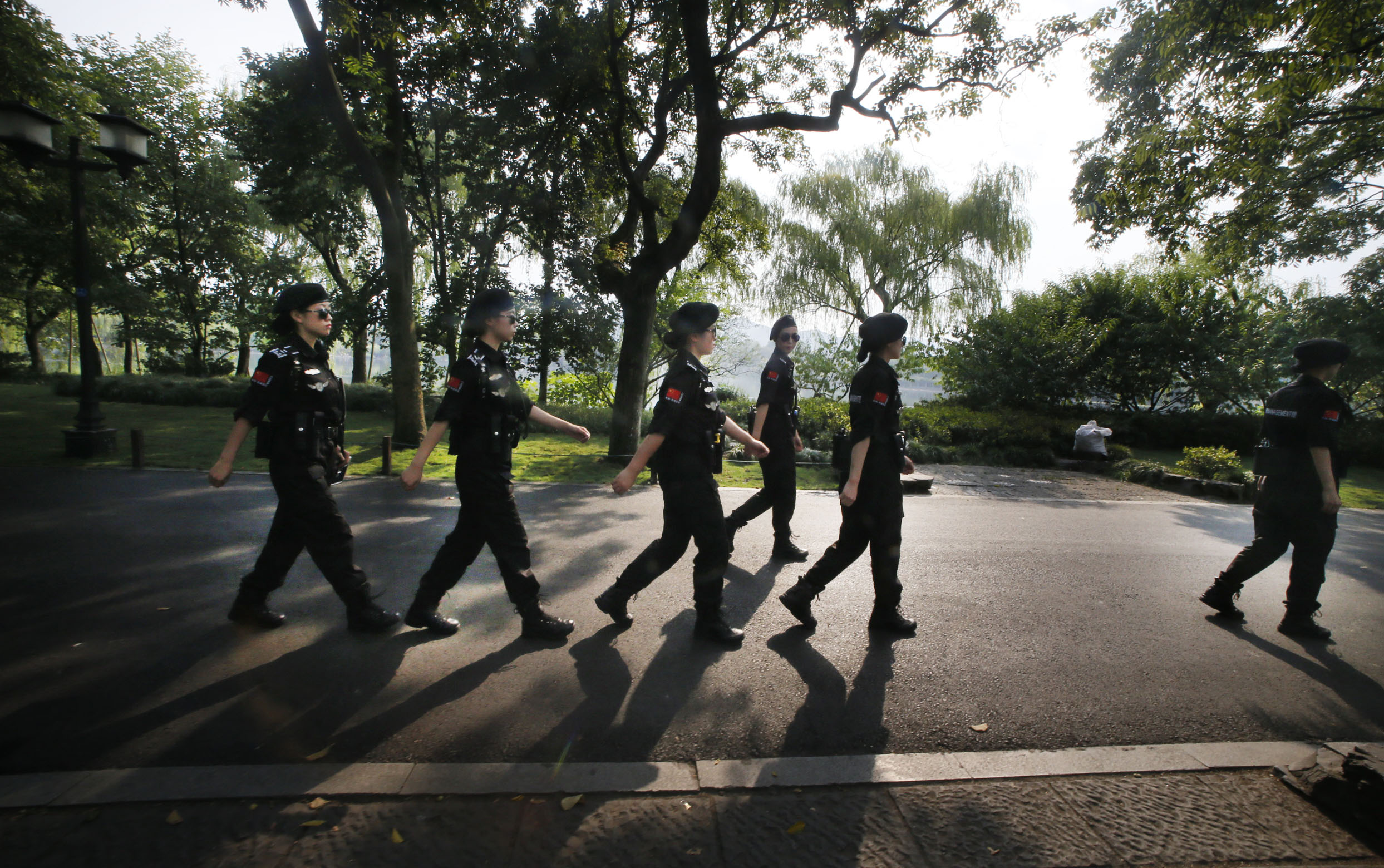 浙江黨建網訊(浙江日報記者 吳新燕 孫瀟娜 實習生 姚穎康 葉琛欣 攝)從今年的五一小長假開始,杭州西湖邊多了一道亮麗的風景線。墨鏡、制服、貝雷帽,她們就是西湖景區執法局G20女子巡邏隊,是為服務G20而特別成立的應急管理服務隊。西湖景區行政執法局G20保障辦主任、女子巡邏隊隊長趙丹介紹,全隊共有21名隊員,平均年齡24歲,身高1.68米以上,全部大學本科學歷,都是經過層層選拔和嚴苛的訓練才被選入隊中。主要維護景區秩序,對不文明行為進行勸導,為外地游客提供咨詢和醫療急救,配合管理突發事件等。隨著女子巡邏隊亮相巡邏三個月以來,西湖邊的秩序越來越好,不文明行為也呈下降趨勢。