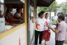 浙江黨建網訊(浙江日報記者 魏志陽 通訊員 魯韻 來曉笑 攝)8月15日,杭州“下城區志愿服務微笑亭+武林大媽工作站”開門迎客,大學生志愿者和“武林大媽”熱心為過往市民、游客提供旅游咨詢、信息查詢、茶水、雨傘、打氣筒等服務。據悉,這里曾經是鬧市區的燒烤攤,經過整治變身為民服務的微笑亭。