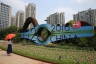 浙江黨建網(wǎng)訊(浙江日?qǐng)?bào)記者 魏志陽(yáng) 攝)8月17日,杭州濱江區(qū)江南大道市民南廣場(chǎng),一座以G20峰會(huì)標(biāo)志和寓意“一帶一路”的絲綢飄帶組成的《舞慶中華》大型立體花壇亮相。