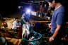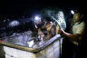 王引寶妻子鈕鳳英做開捕準備工作:水箱注滿水,將捕撈上來的太湖白魚放入其中。