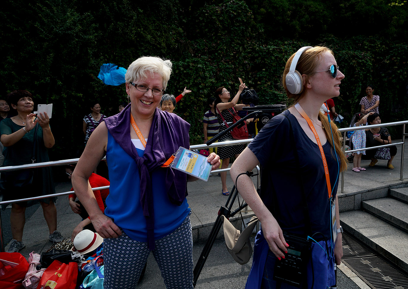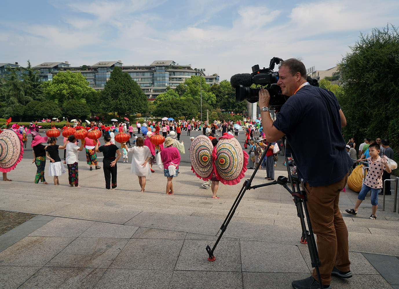 浙江黨建網訊G20峰會開幕在即,世界各地的記者紛紛來到杭州,他們深入大街小巷、景區公園進行前期采訪,和市民進行互動。8月31日上午,英國BBC電視臺的記者來到吳山廣場,采訪了正在跳舞、打太極、騎獨輪車和休閑的市民,為杭州市民熱情、自信和開放的神情所感染。當問到怎么看待G20會議在杭州召開時,在場的市民紛紛開心地說:歡迎世界各地的朋友來到我們美麗的杭州!(王郁 攝)