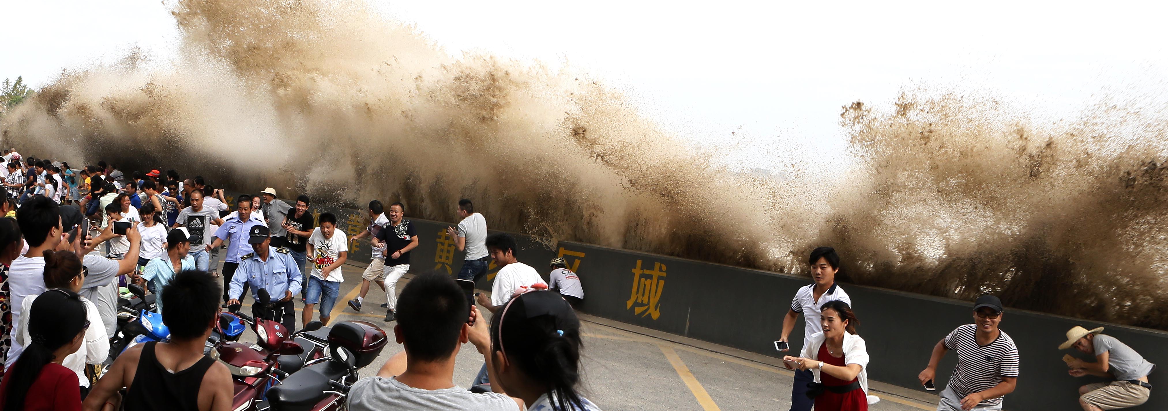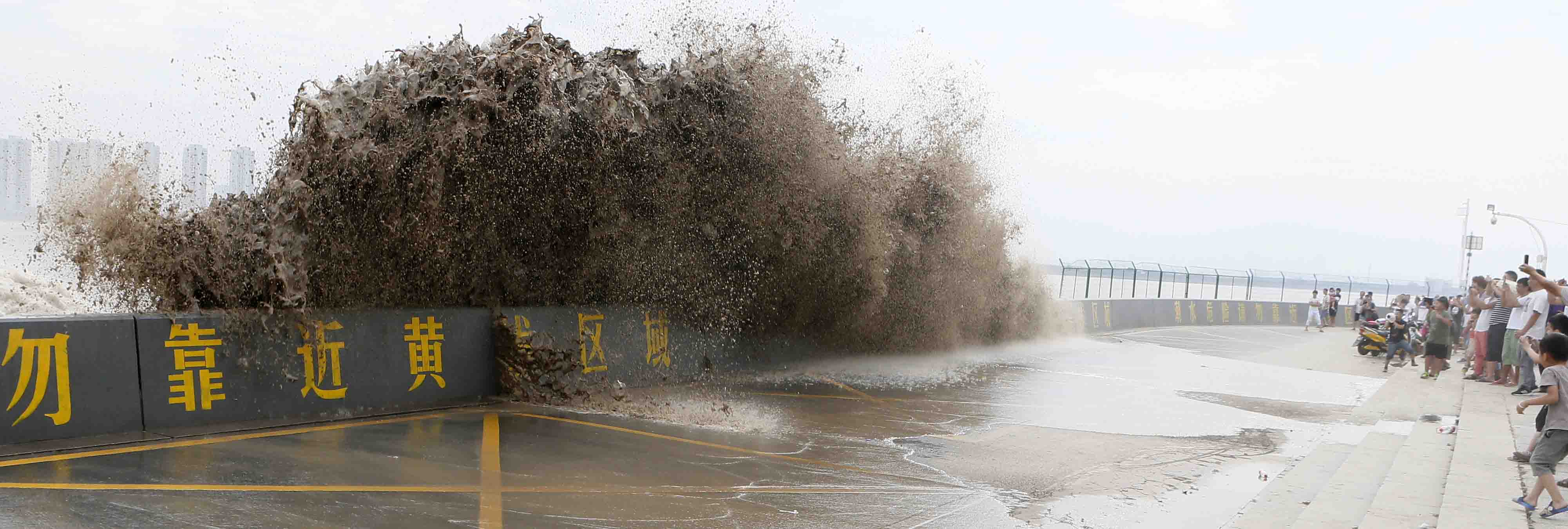 浙江黨建網訊(浙江日報記者 邵全海 攝)9月5日,杭州市七格觀潮點,壯觀的錢江大潮呼嘯著沖上堤壩、馬路,令觀眾猝不及防。據悉,錢江大潮是太陽、月亮、地球幾乎連成一線的時刻,太陽和月亮的吸引力合在一起吸引球表面海水形成的,這天下奇絕的自然景觀,令中外無數游客紛至沓來,觀看和拍攝這震撼的瞬間。