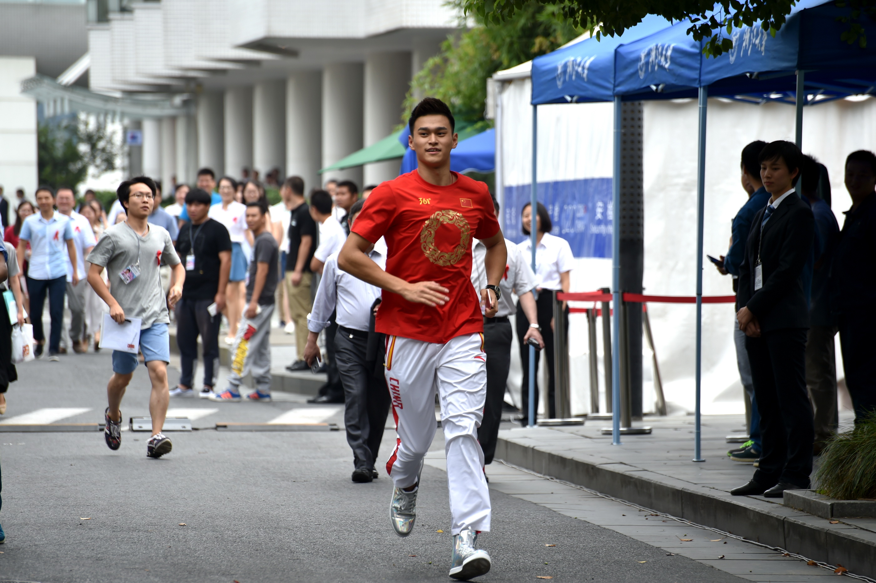 浙江黨建網訊(浙江日報記者 潘海松 攝)9月5日,孫楊、傅園慧在浙江大學參加G20杭州峰會的一場外事活動。會后,兩位奧運明星被眾人追著簽名合影。