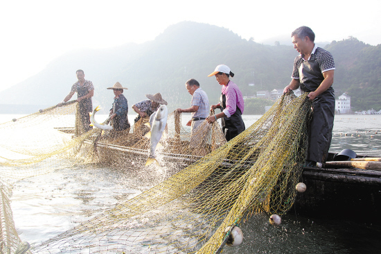 浙江黨建網(wǎng)訊9月4日,長潭水庫實業(yè)有限公司組織人員在水庫捕魚。這是長潭水庫成為浙江省水庫“潔水保水漁業(yè)”示范基地以來進行的首次漁業(yè)捕撈。