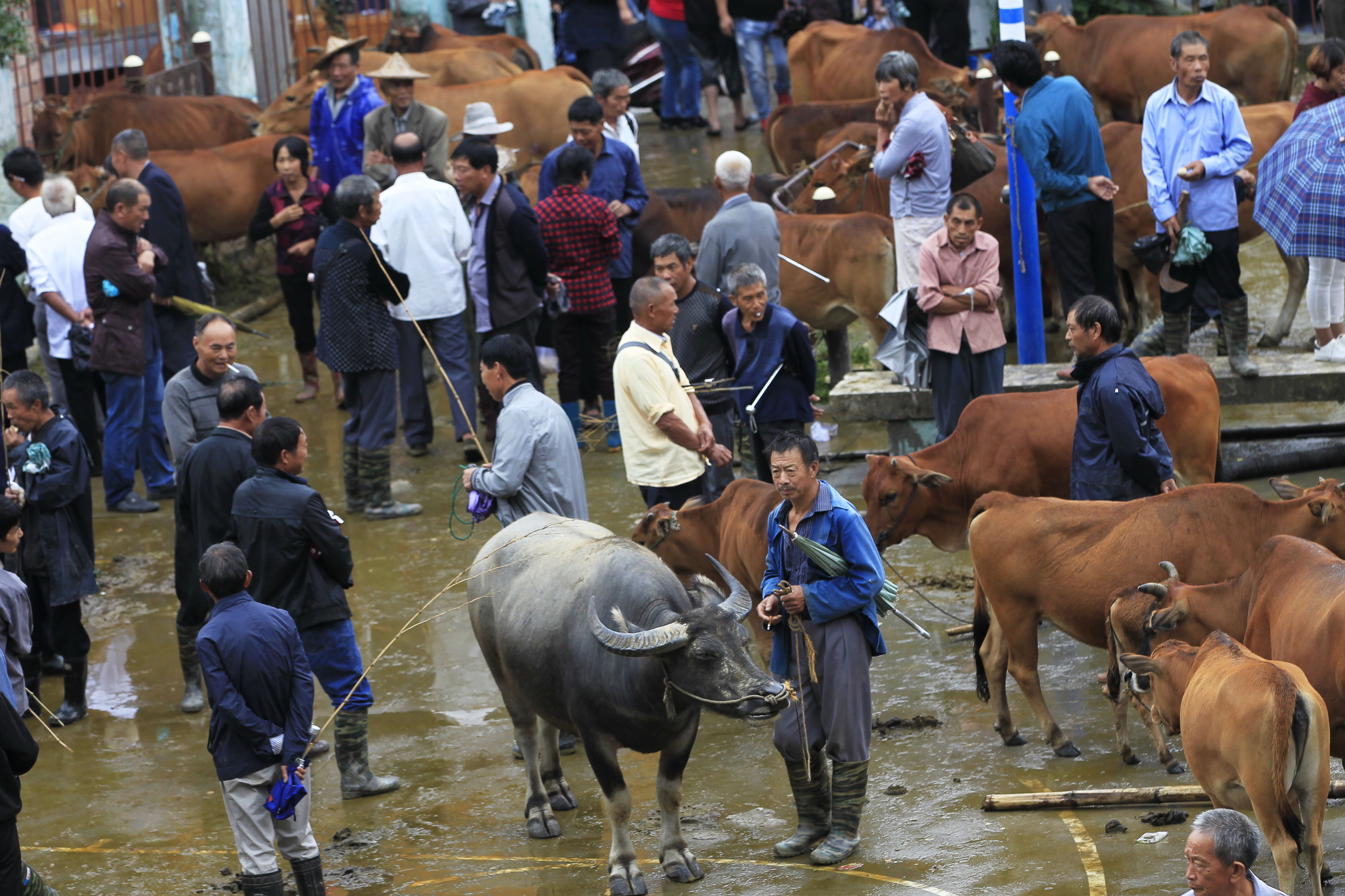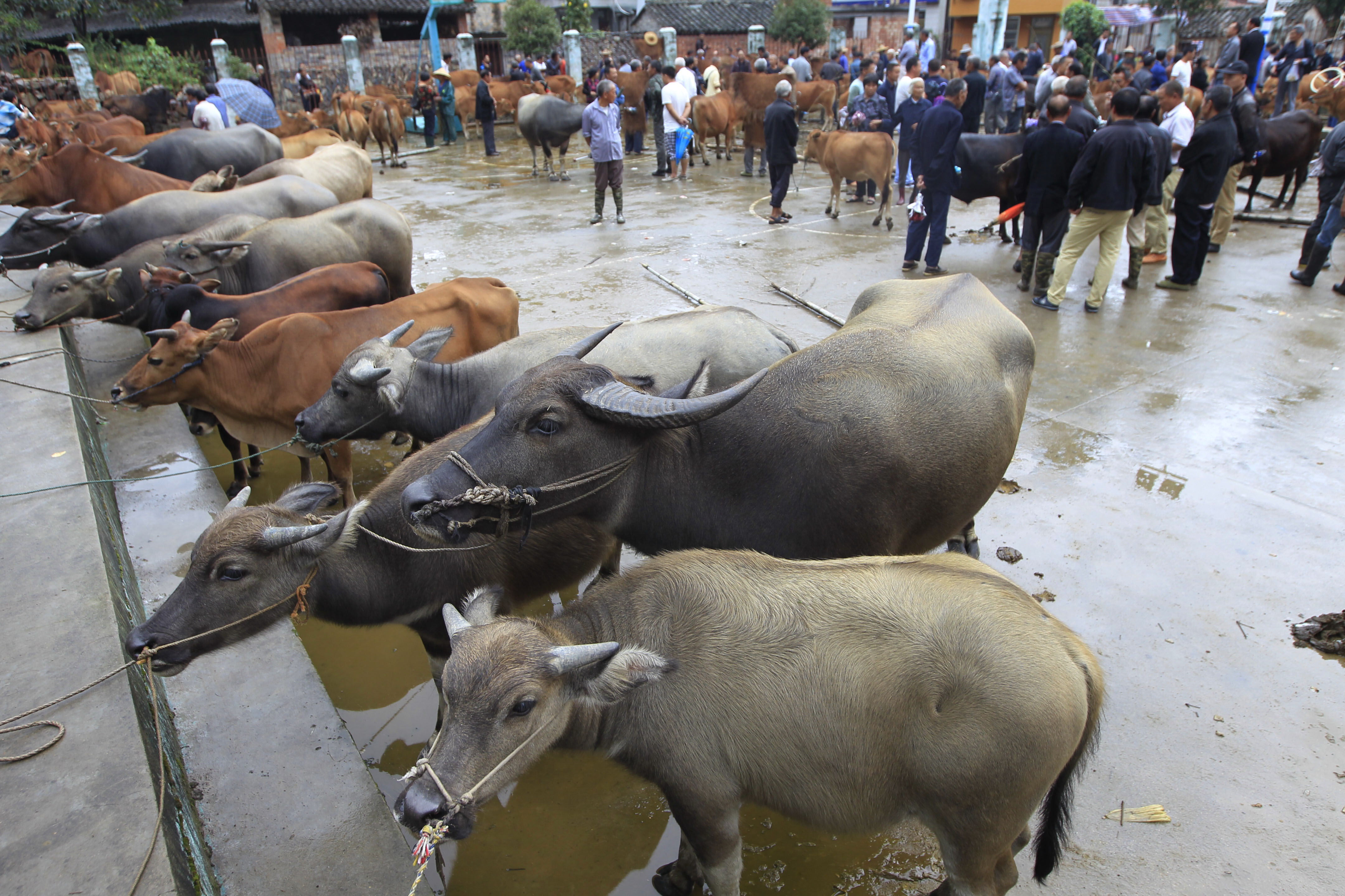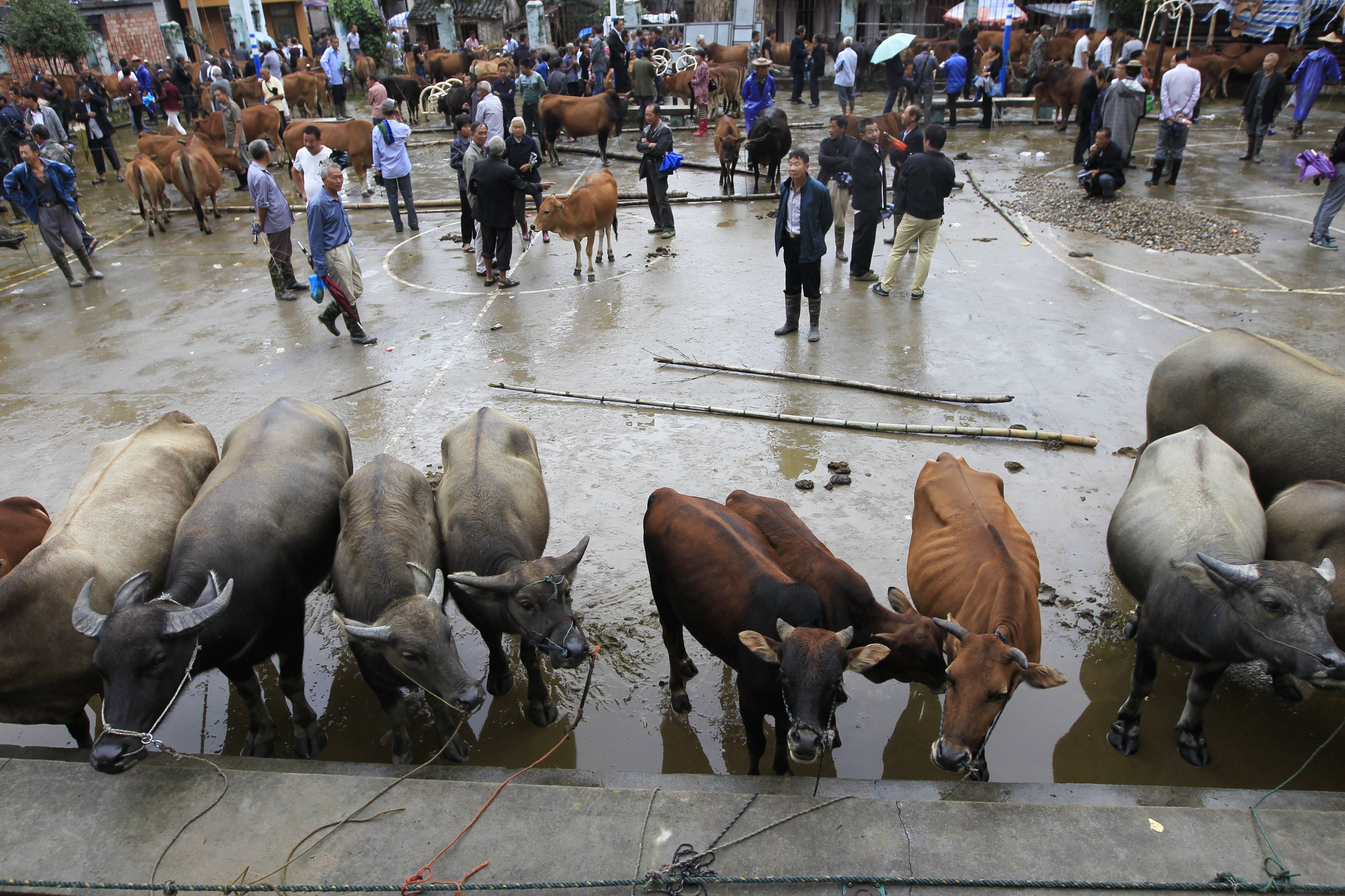 浙江黨建網訊9月13日,永嘉縣茗岙鄉在茗下村廣場舉行了一年一度的“牛市節”,來自周邊鄉鎮群眾的近千頭黃牛、水牛在這里上市交易。據當地宗譜記載,清末時,茗岙牛市日交易耕牛達千余頭。(蘇巧將 攝)