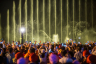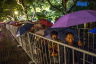 大批游人冒雨觀賞西湖音樂噴泉