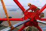 浙江黨建網訊10月6日,浙江送變電工人在舟山市岱山輸電線路改造工程灌門大跨越K11高塔上(鐵塔總高224米)進行最后的緊固件安裝。國慶期間,電力工人為了該工程按時架線,始終奮戰在百米高空。