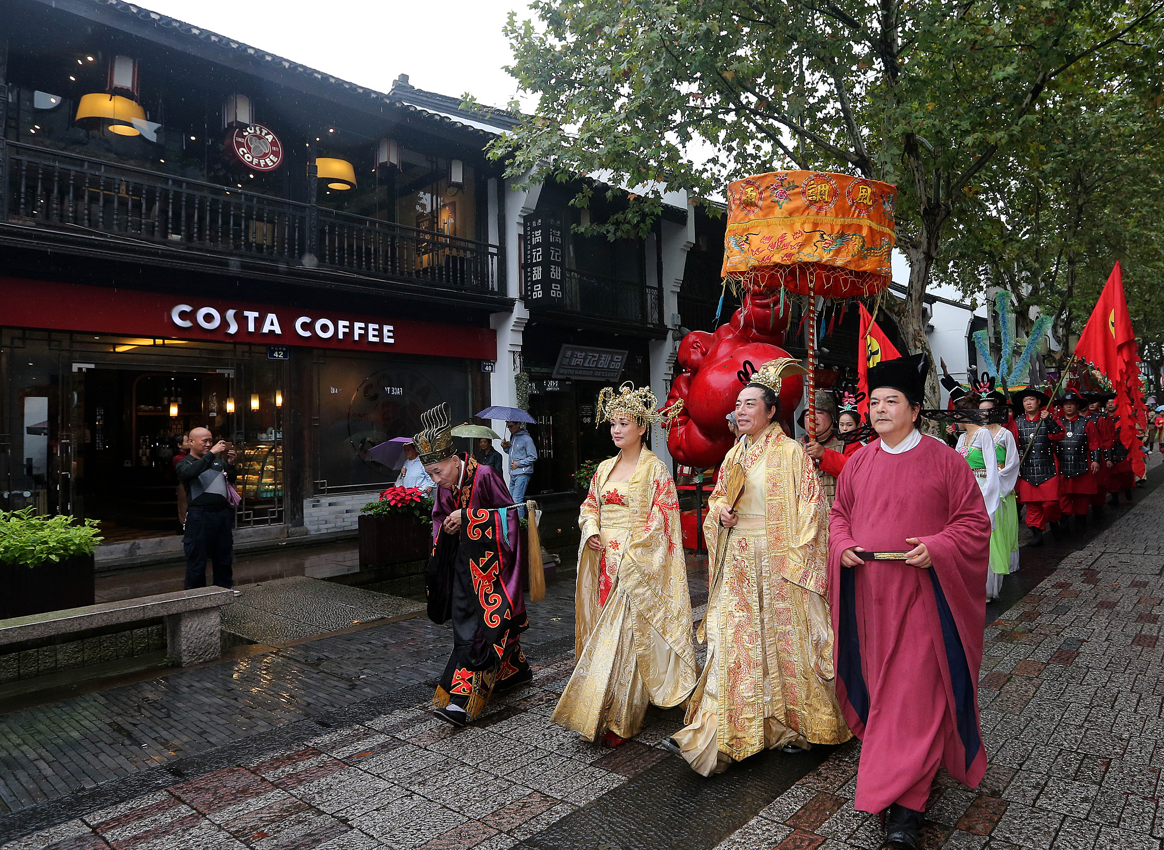 浙江黨建網訊(浙江日報記者 林云龍 攝)10月20日,南宋皇城小鎮啟動儀式暨2016吳山廟會開幕式在鼓樓小廣場舉行,開幕式上市民和游客觀看鼓樓士兵換崗,感受宋韻文化。