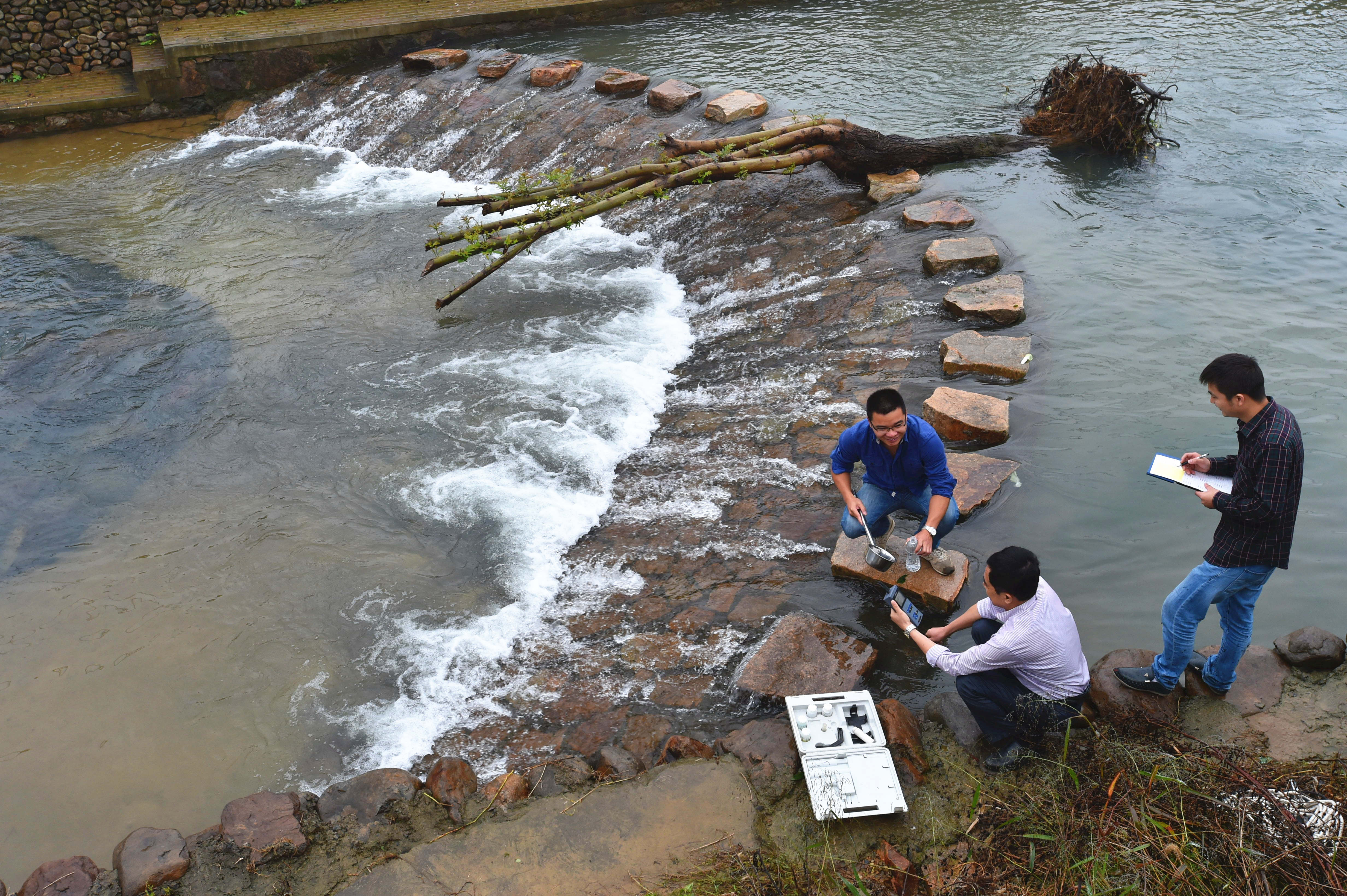 浙江黨建網(wǎng)訊(浙江日?qǐng)?bào)記者 葉寒青 通訊員 宣宏 宣云潔 攝)10月27日,德清縣舞陽街道湘溪山民村段村級(jí)河長高法林、青年護(hù)水隊(duì)志愿者與相關(guān)專業(yè)人員,一同對(duì)河水進(jìn)行溶解氧和PH值的檢測,同時(shí)做好“河道體檢”記錄。該街道的20名村級(jí)河長除了完成治水日常工作外,每月定期對(duì)轄區(qū)內(nèi)200多條河道和溪流開展水質(zhì)自查自檢。