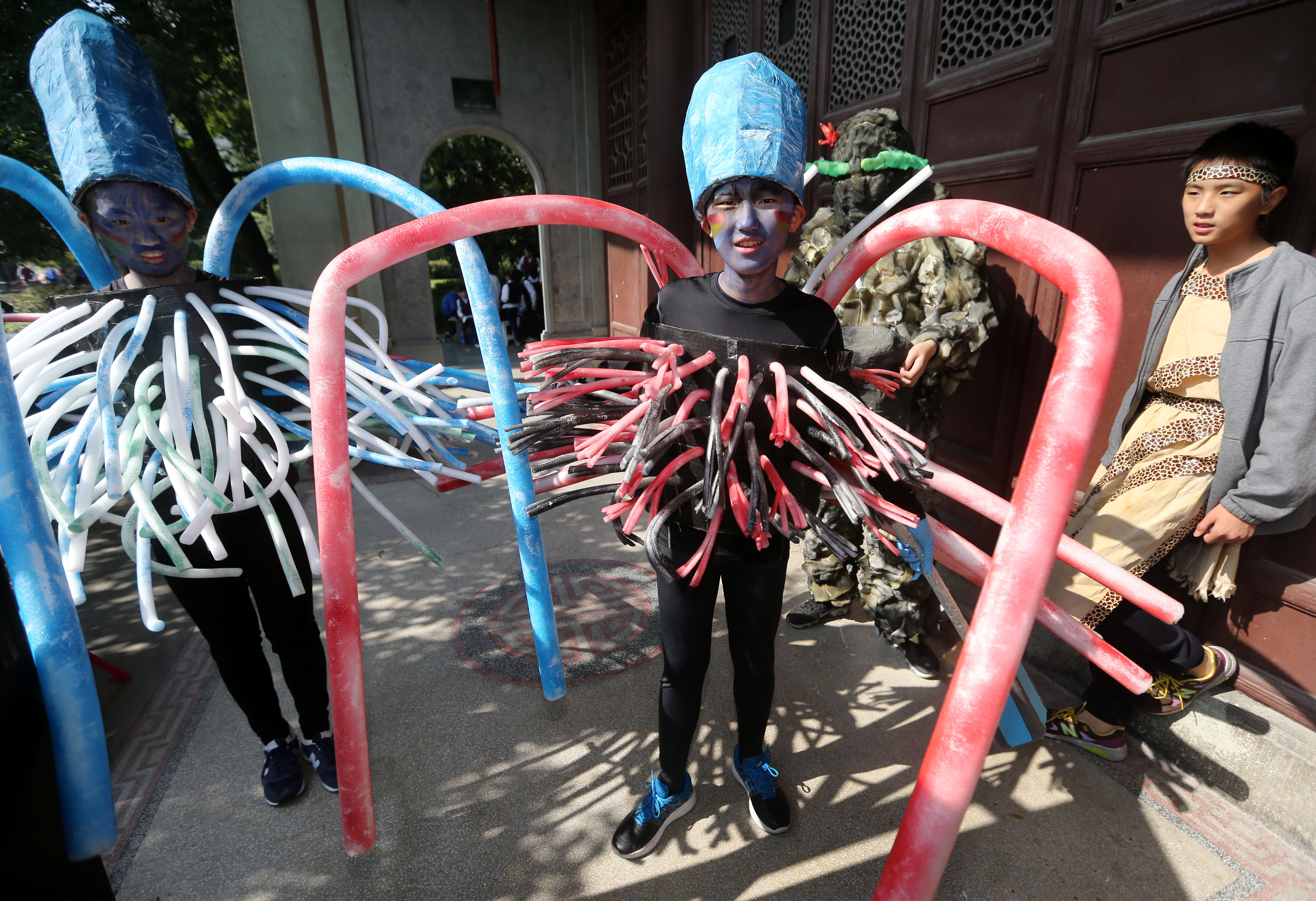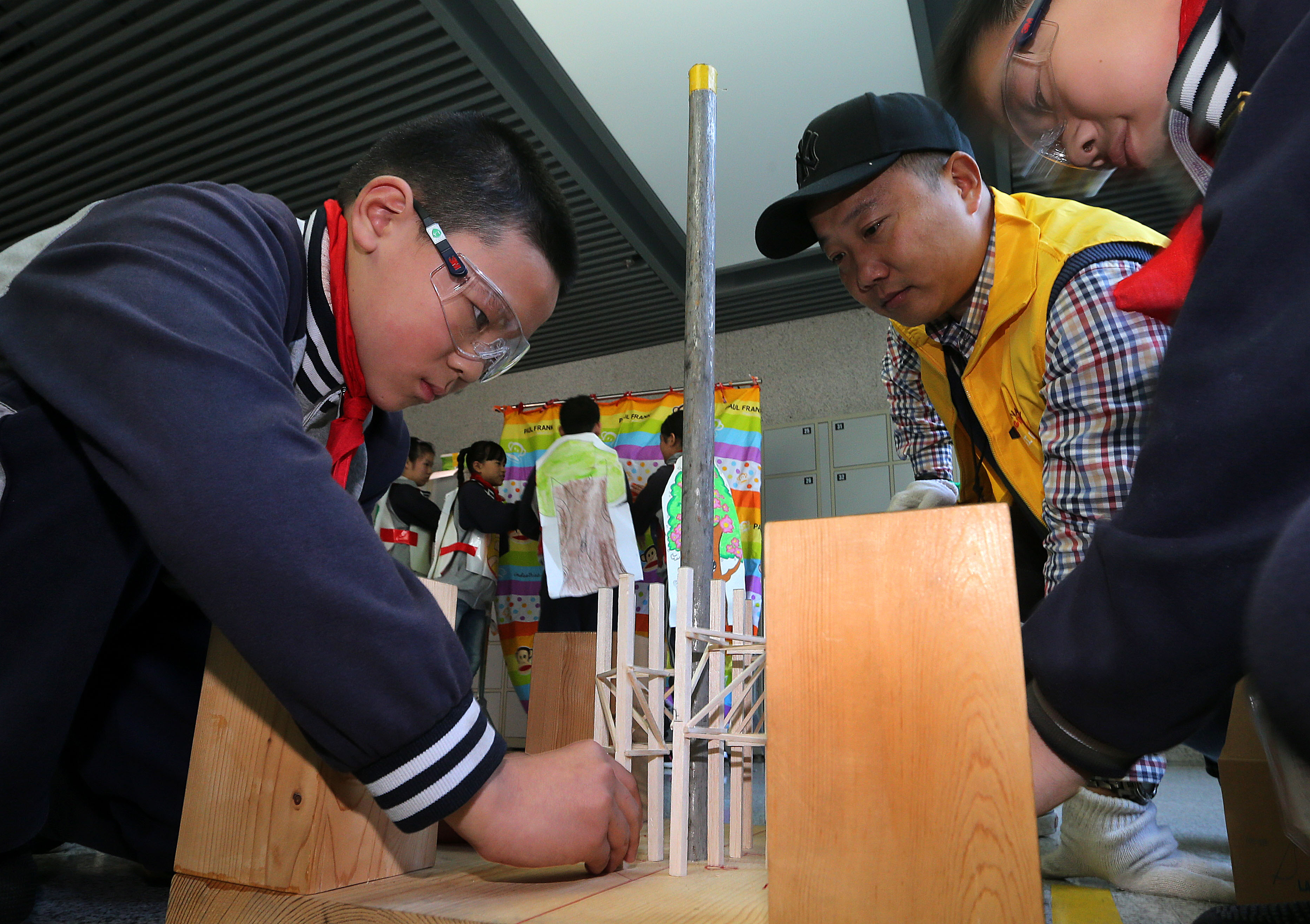 浙江黨建網訊(浙江日報記者 林云龍 于詩奇 攝)11月3日,杭州市青少年DI創(chuàng)新思維大賽在杭州青少年活動中心舉行,有近70支隊伍參加了技術類、科技類、藝術類和結構類的比賽。DI中文翻譯為“目的地想象”,是培養(yǎng)青少年創(chuàng)新能力的國際性教育項目。DI的競賽形式是給參賽者設置一個“目的地”,由參賽者自己設計活動方案、設計情節(jié)、制作道具,5至7人一組,齊心合力完成設計目標。DI創(chuàng)新思維大賽為學生提供了廣闊的想象和創(chuàng)造空間,解題方案多種多樣,要求參賽者的創(chuàng)意新、奇、特,沒有統(tǒng)一標準答案,標準就是“沒有最好、只有更好”。