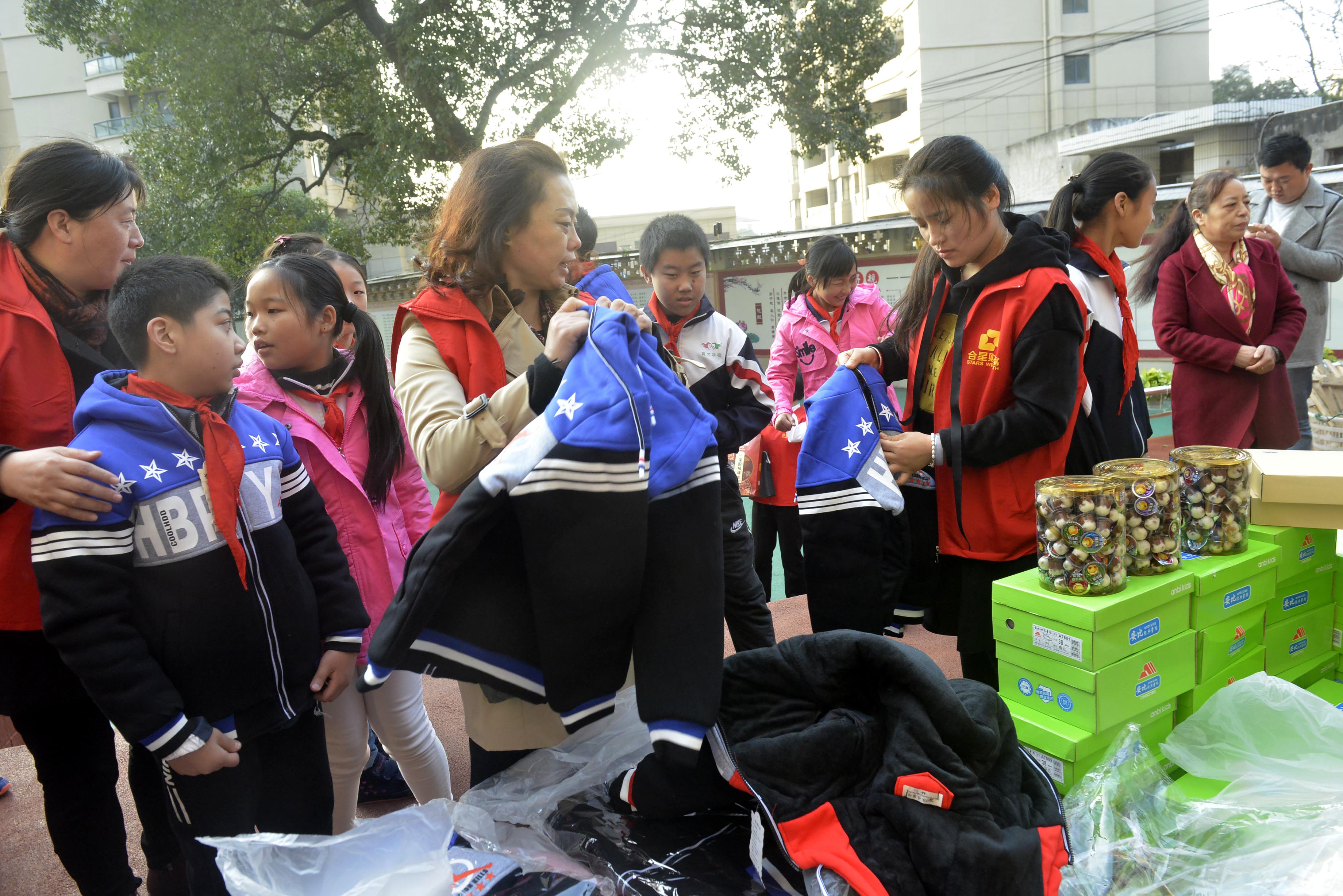 浙江黨建網(wǎng)訊(舟山日?qǐng)?bào)記者 胡社友 攝)12月4日,舟山QQ群團(tuán)體愛(ài)心人士聯(lián)系一家企業(yè)志愿者前往定海區(qū)育才學(xué)校,看望民工子弟,并送上羽絨服、運(yùn)動(dòng)鞋和學(xué)習(xí)用品。