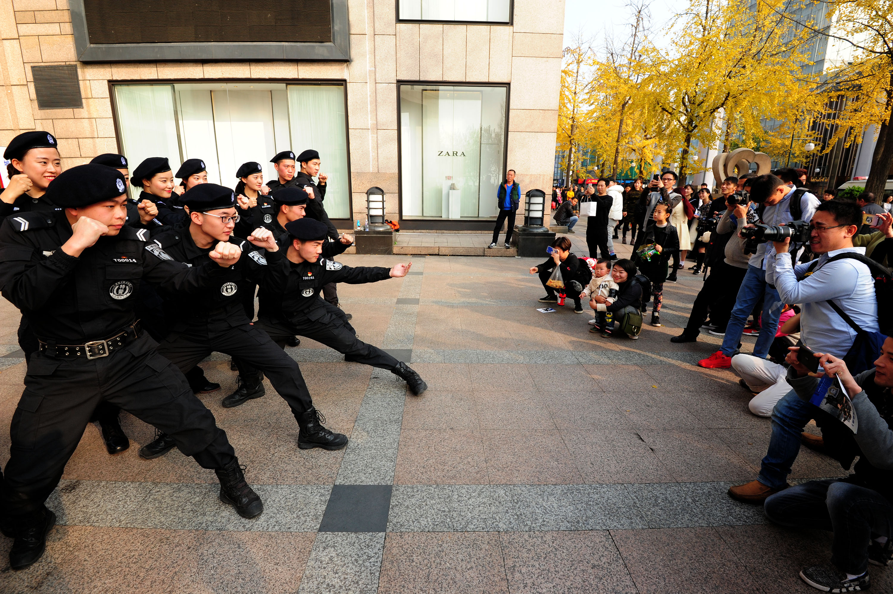 浙江黨建網訊12月4日下午,在第三個國家憲法日來臨之際,由杭州市反恐怖領導小組辦公室、杭州市公安局反恐怖支隊、上城區反恐怖工作領導小組辦公室、上城區公安局等部門協辦的“12·4反恐在身邊”大型活動暨《反恐法》培訓宣傳活動,在杭州利星廣場舉行。現場一群顏值爆表的年輕阿sir和警花的精彩“快閃”,以及現場的宣傳反恐知識及有獎競猜吸引了眾多市民百姓參與。(蘇斌 攝)