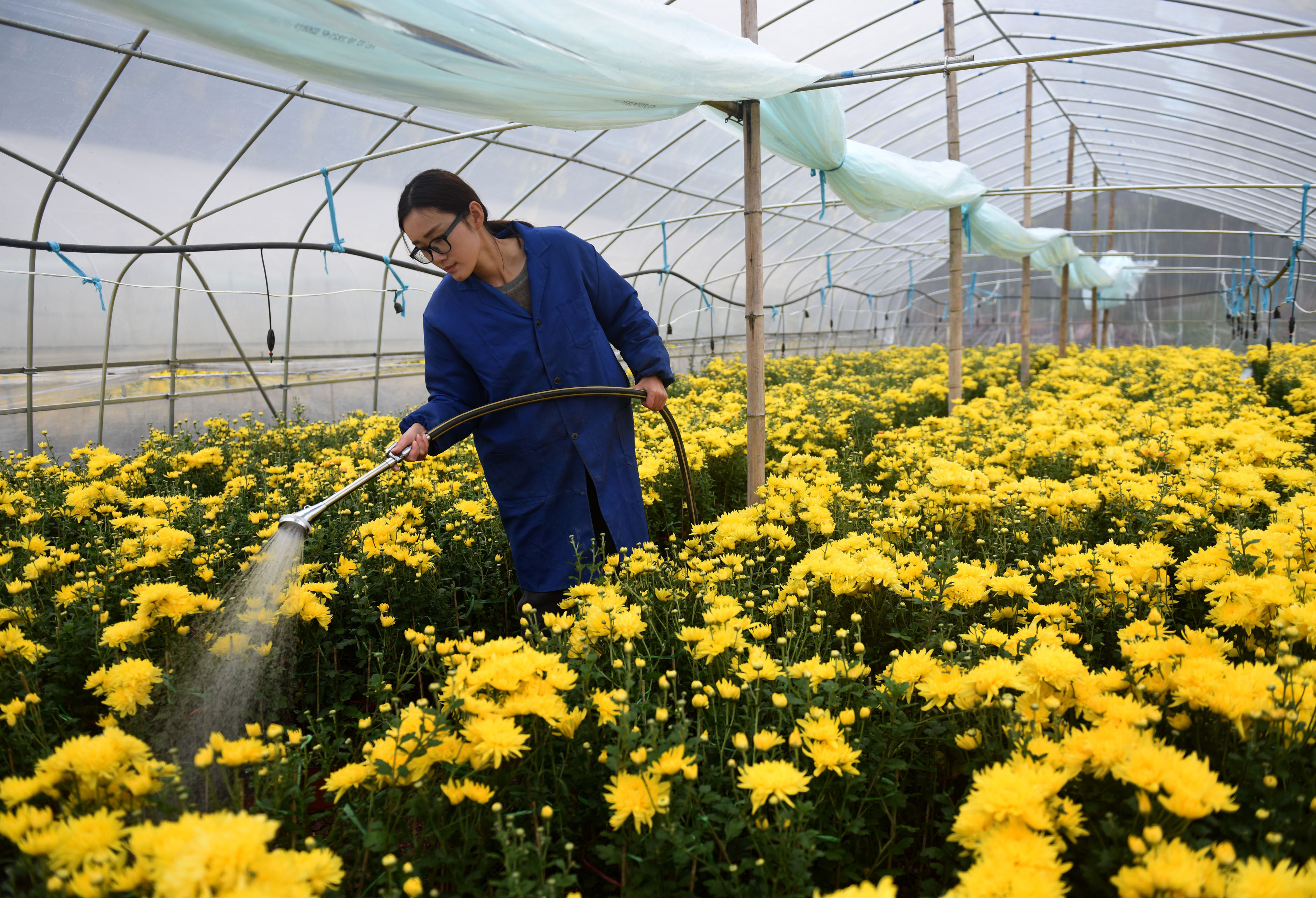 今年26歲的朱雯思,大學畢業(yè)后打過工,她認準種植菊花是很有市場前景的產(chǎn)業(yè),于今年6月注冊了武義泉溪(白革)雯卉家庭農(nóng)場。今年首批種植的5萬盆菊花,其中2萬盆供應冬至祭祀用的菊花已被客戶定購。另外3萬盆供應春節(jié)和清明市場的菊花苗也長勢良好。目前,朱雯思正與村民洽談土地流轉(zhuǎn)事宜,打算明年再擴大20畝大棚菊花種植面積。(張建成 攝)