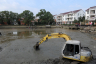 12月15日,東陽市南馬鎮花園村在清理池塘淤泥、修整護堤。