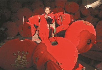 12月26日,柯城區(qū)航埠鎮(zhèn)孫家村的村民正加班加點(diǎn)生產(chǎn)銷往全國(guó)各地的大紅燈籠。眼下該村的燈籠的日發(fā)貨量已突破萬(wàn)余只。(吳鐵鳴 戎融 攝)
