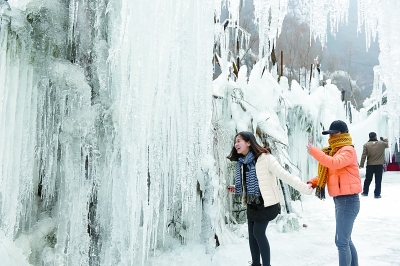 隨著天氣轉寒,位于太行山深處的河北邢臺天河山景區形成美麗的冰瀑、冰掛等景觀,把人們帶入迷人的冰雪世界。(趙永輝 攝)