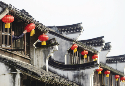12月27日,嘉興月河,工作人員把景區內的紅燈籠更換一新,迎接新年的到來。(王振宇 攝)