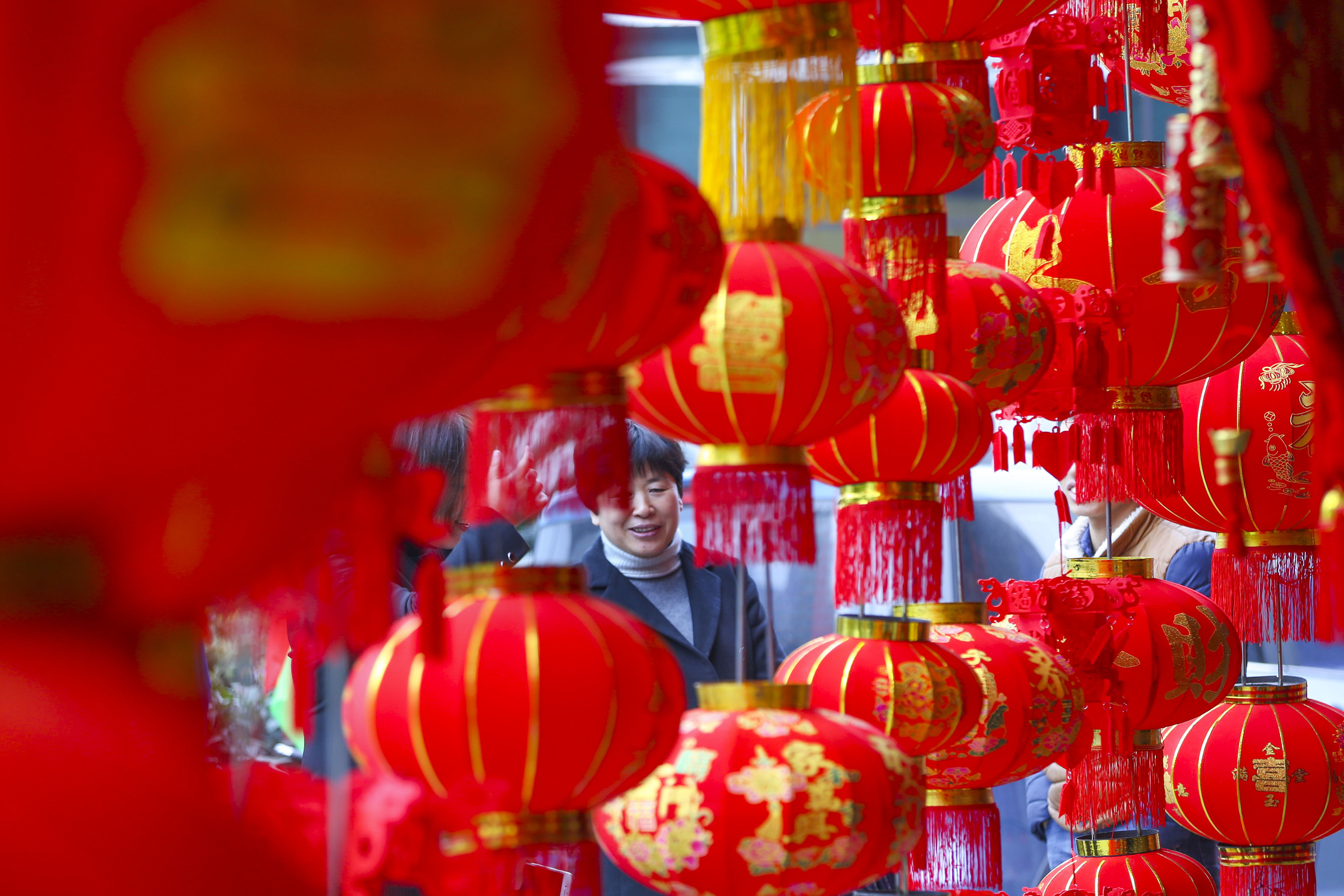 浙江黨建網訊1月10日,在溫州市甌海區過境公路,市民在選購紅燈籠。隨著春節臨近,市民開始忙著選購年畫、中國結、紅燈籠等傳統年貨,增添節日喜慶氛圍。(蘇巧將 蔡溫瑞 攝)